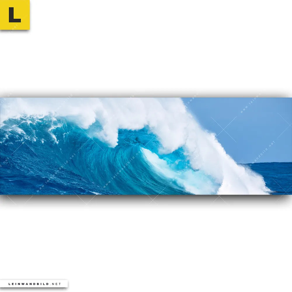 Du konfigurierst Dein individuelles Leinwandbild | Blaue Welle im Meer | Panorama und wir produzieren es NEU für Dich. Unsere Strand - Meer Leinwände sind KEINE Lagerware. Du bist Dir unsicher, welches Motiv oder Format das richtige für dein individuelles Keilrahmenbild ist, dann helfen wir dir gerne weiter und beraten dich!