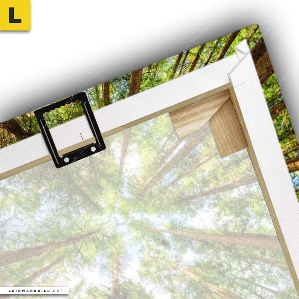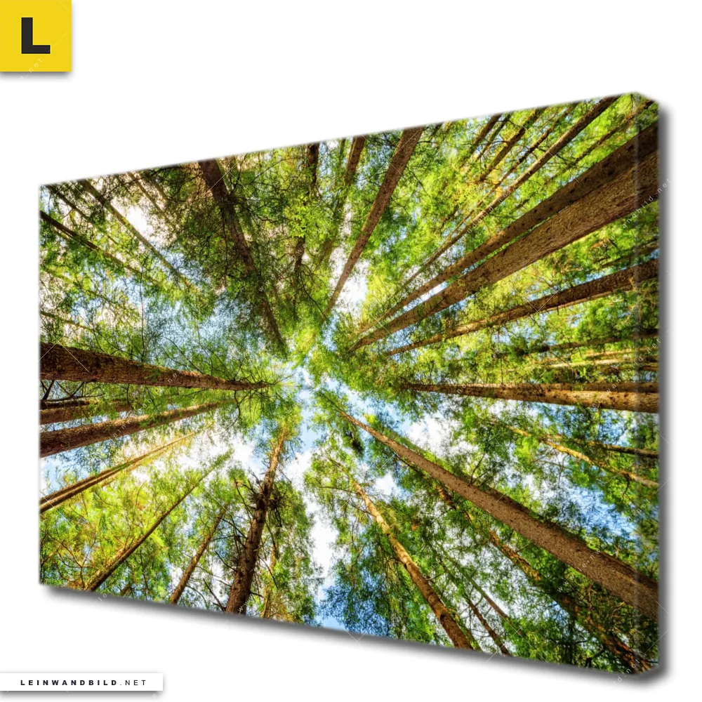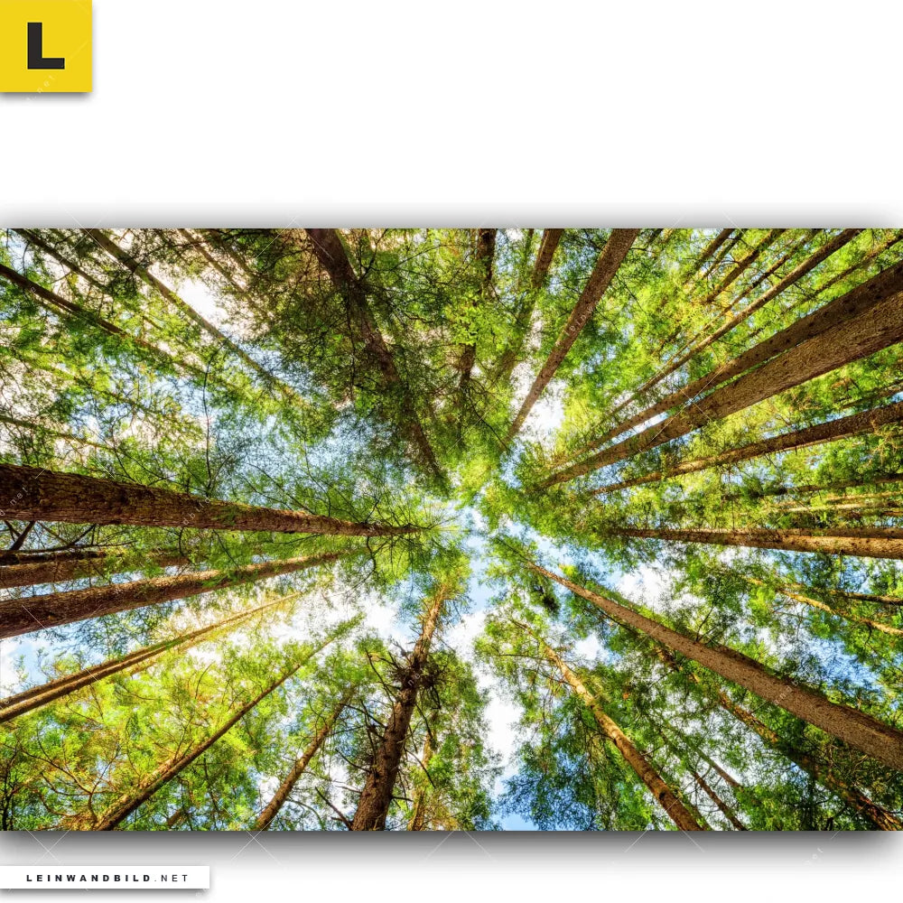 Du konfigurierst Dein individuelles Leinwandbild | Blick in Baumkronen | Querformat und wir produzieren es NEU für Dich. Unsere Landschaften, Wald - Bäume Leinwände sind KEINE Lagerware. Du bist Dir unsicher, welches Motiv oder Format das richtige für dein individuelles Keilrahmenbild ist, dann helfen wir dir gerne weiter und beraten dich!