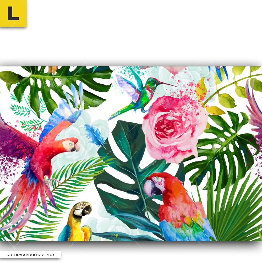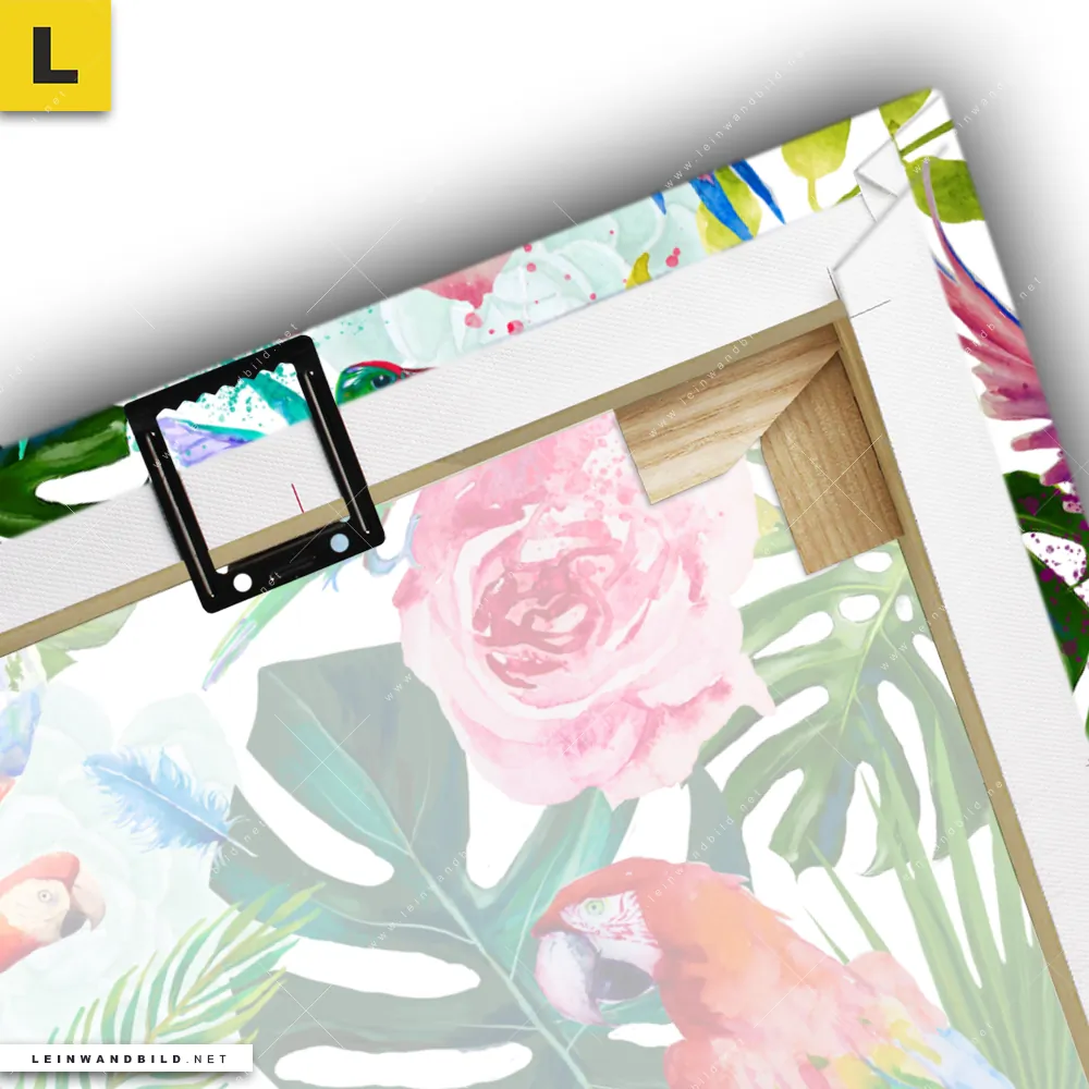 Du konfigurierst Dein individuelles Leinwandbild | Blumen & Papageien Aquarell | Querformat und wir produzieren es NEU für Dich. Unsere Tierwelt, Blumen - Botanik Leinwände sind KEINE Lagerware. Du bist Dir unsicher, welches Motiv oder Format das richtige für dein individuelles Keilrahmenbild ist, dann helfen wir dir gerne weiter und beraten dich!