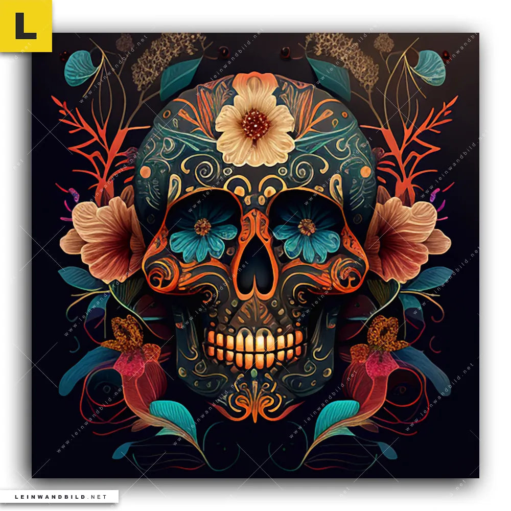 Leinwandbild | Blumenschädel schwarz | Quadrat