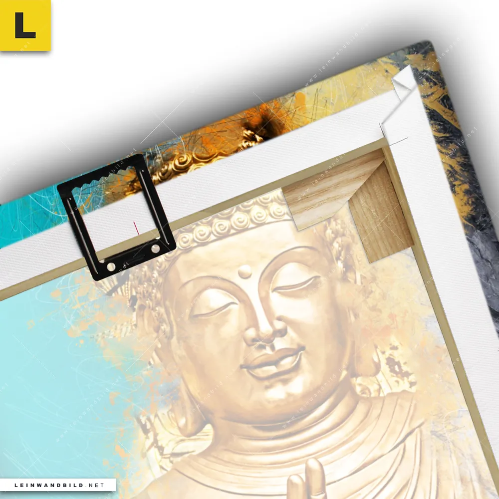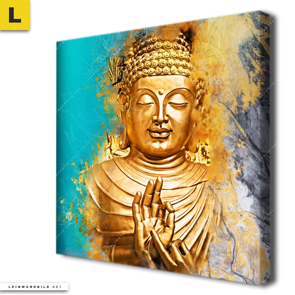 Du konfigurierst Dein individuelles Leinwandbild | Buddha Gold & Türkis | Quadrat und wir produzieren es NEU für Dich. Unsere Buddha - Feng Shui Leinwände sind KEINE Lagerware. Du bist Dir unsicher, welches Motiv oder Format das richtige für dein individuelles Keilrahmenbild ist, dann helfen wir dir gerne weiter und beraten dich!