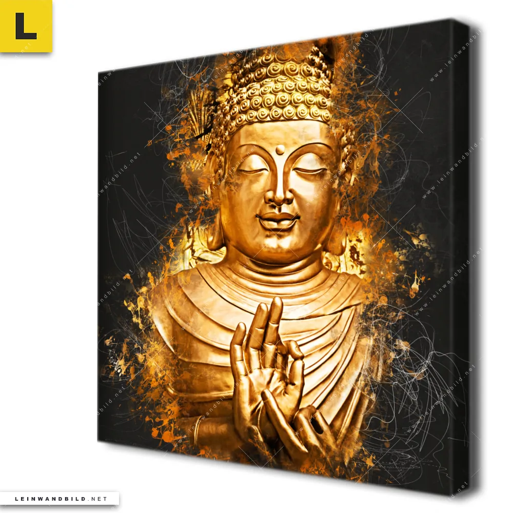 Du konfigurierst Dein individuelles Leinwandbild | Buddha Golden Splash | Quadrat und wir produzieren es NEU für Dich. Unsere Buddha - Feng Shui Leinwände sind KEINE Lagerware. Du bist Dir unsicher, welches Motiv oder Format das richtige für dein individuelles Keilrahmenbild ist, dann helfen wir dir gerne weiter und beraten dich!