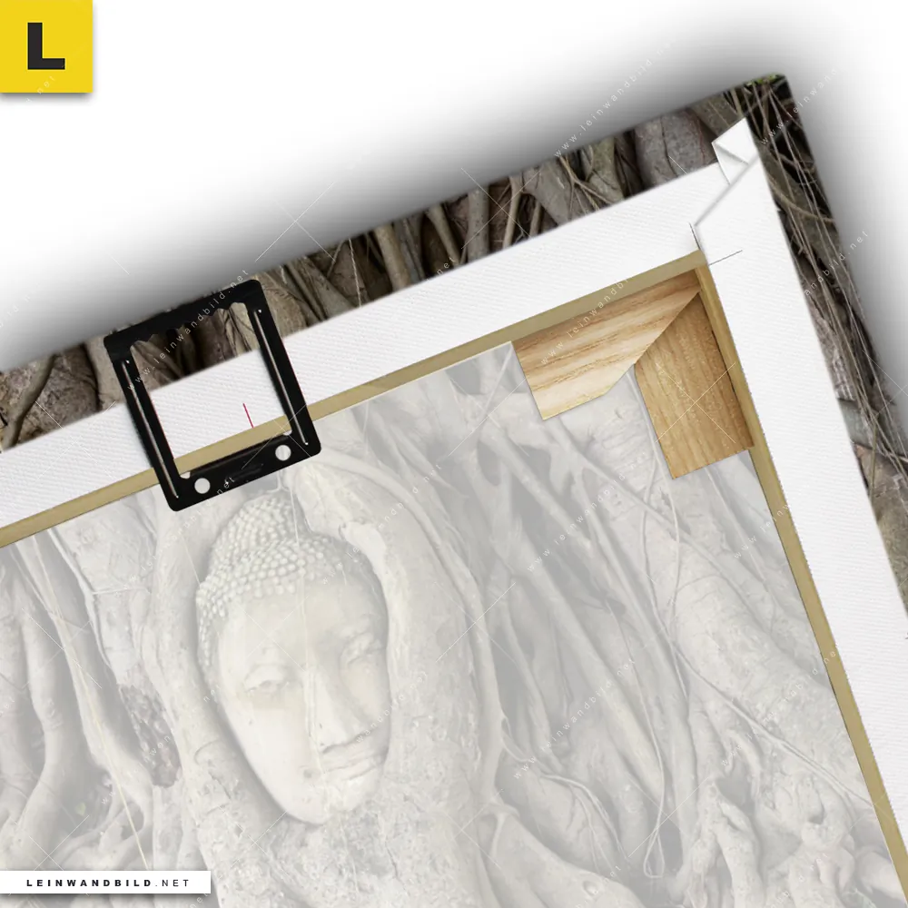 Du konfigurierst Dein individuelles Leinwandbild | Buddha in Baumwurzeln | Querformat und wir produzieren es NEU für Dich. Unsere Buddha - Feng Shui Leinwände sind KEINE Lagerware. Du bist Dir unsicher, welches Motiv oder Format das richtige für dein individuelles Keilrahmenbild ist, dann helfen wir dir gerne weiter und beraten dich!