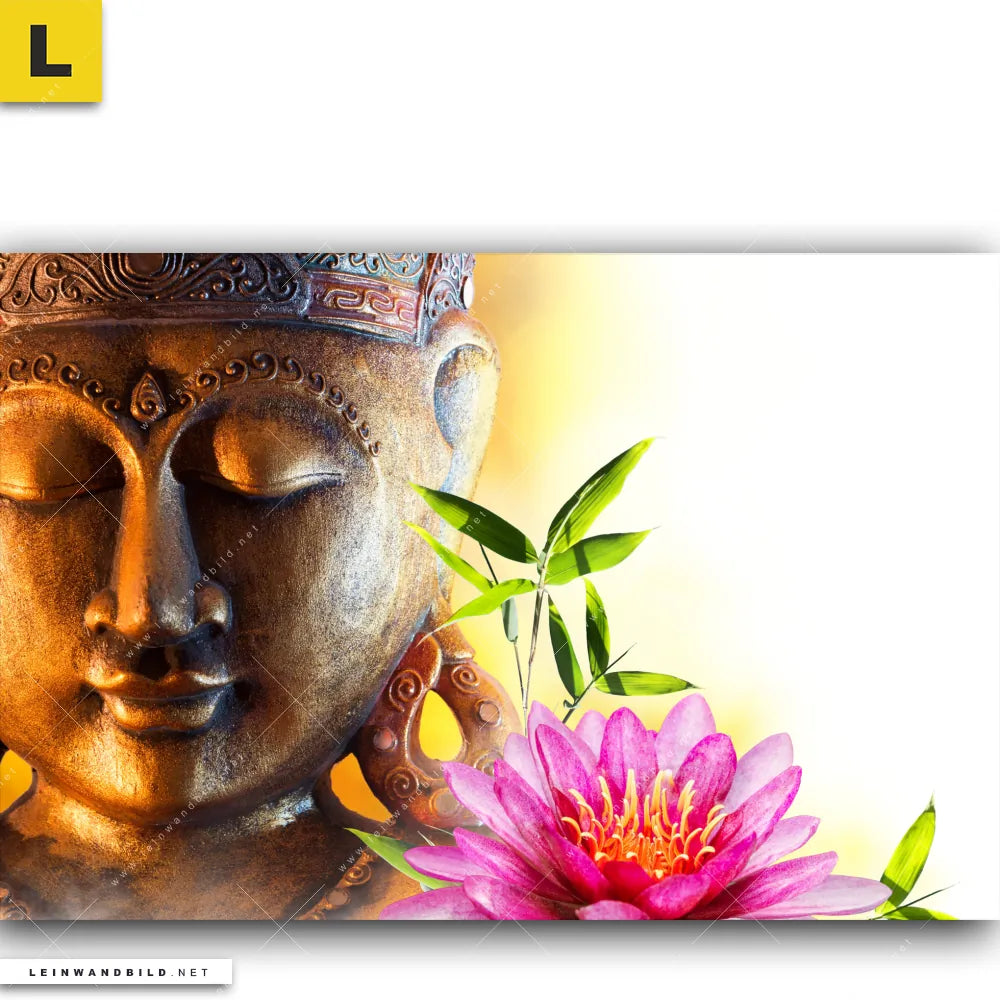 Leinwandbild | Buddha Kopf & Seerose | Querformat