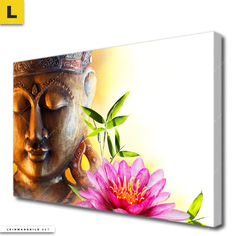Du konfigurierst Dein individuelles Leinwandbild | Buddha Kopf & Seerose | Querformat und wir produzieren es NEU für Dich. Unsere Buddha - Feng Shui Leinwände sind KEINE Lagerware. Du bist Dir unsicher, welches Motiv oder Format das richtige für dein individuelles Keilrahmenbild ist, dann helfen wir dir gerne weiter und beraten dich!