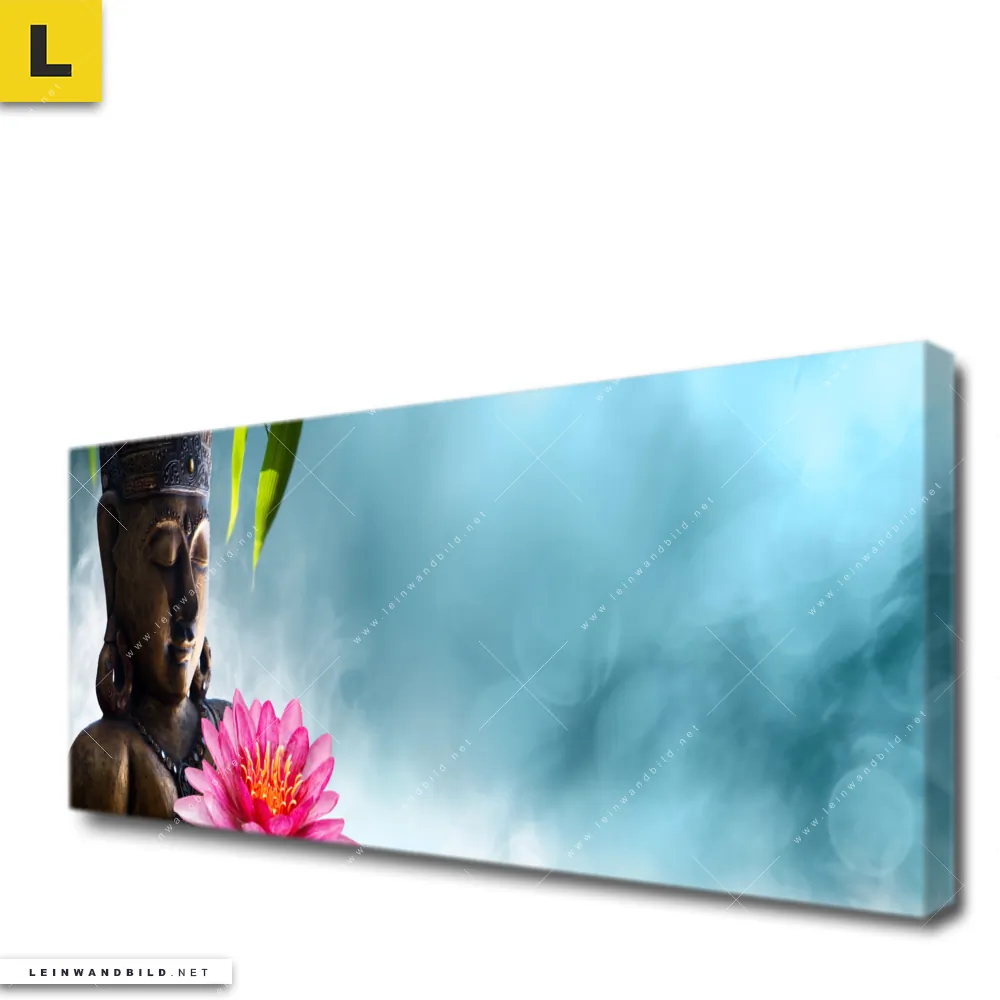 Du konfigurierst Dein individuelles Leinwandbild | Buddha Statue mit Seerose | Panorama und wir produzieren es NEU für Dich. Unsere Buddha - Feng Shui Leinwände sind KEINE Lagerware. Du bist Dir unsicher, welches Motiv oder Format das richtige für dein individuelles Keilrahmenbild ist, dann helfen wir dir gerne weiter und beraten dich!