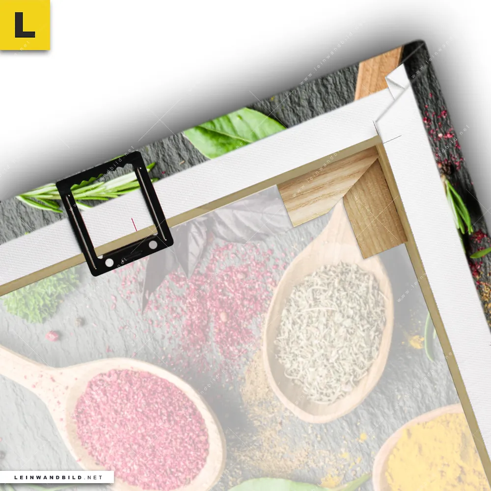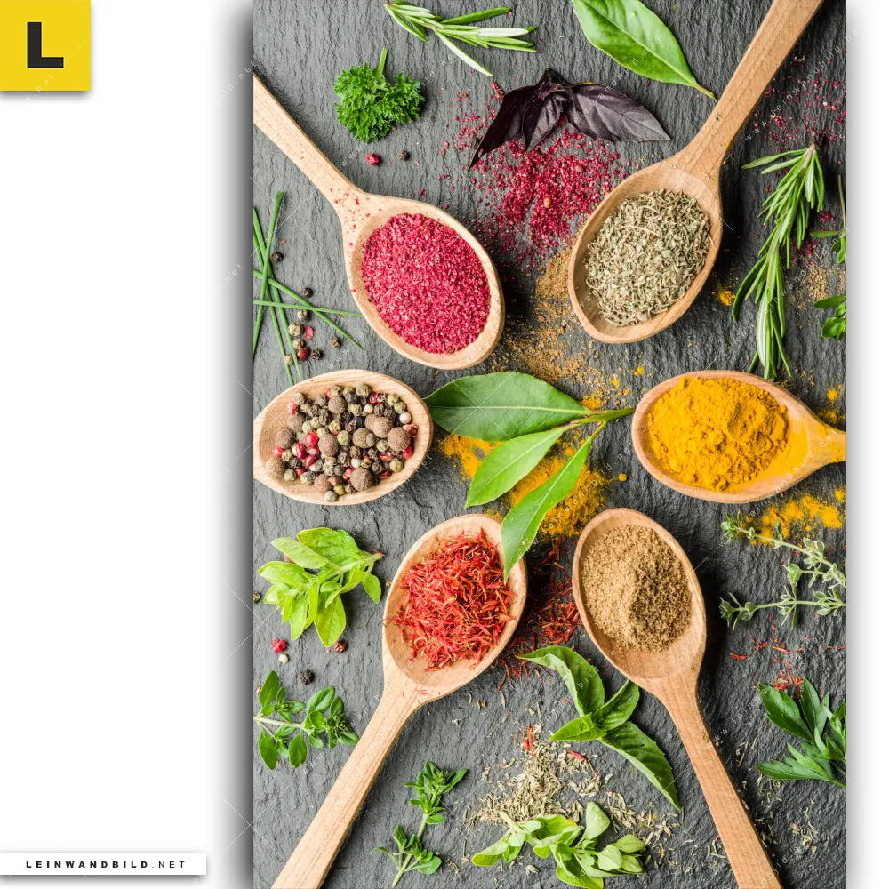 Du konfigurierst Dein individuelles Leinwandbild | Bunte Gewürze in Holzlöffeln | Hochformat und wir produzieren es NEU für Dich. Unsere Essen - Trinken Leinwände sind KEINE Lagerware. Du bist Dir unsicher, welches Motiv oder Format das richtige für dein individuelles Keilrahmenbild ist, dann helfen wir dir gerne weiter und beraten dich!