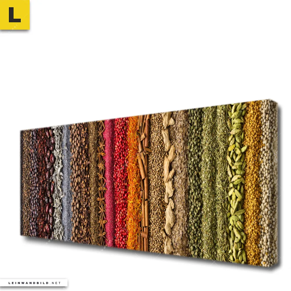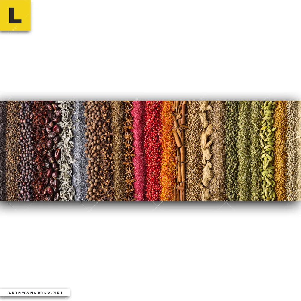 Du konfigurierst Dein individuelles Leinwandbild | Bunte Gewürze | Panorama und wir produzieren es NEU für Dich. Unsere Essen - Trinken Leinwände sind KEINE Lagerware. Du bist Dir unsicher, welches Motiv oder Format das richtige für dein individuelles Keilrahmenbild ist, dann helfen wir dir gerne weiter und beraten dich!