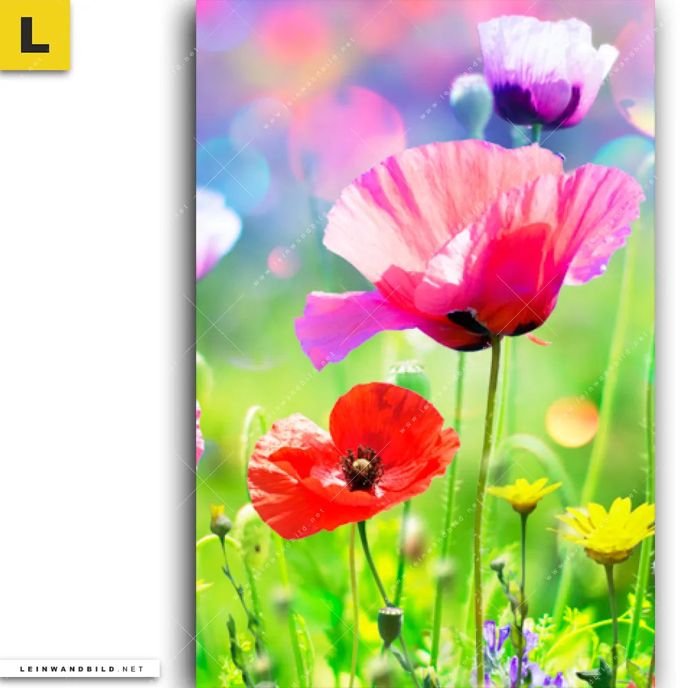 Du konfigurierst Dein individuelles Leinwandbild | Bunte Mohnblumen | Hochformat und wir produzieren es NEU für Dich. Unsere Landschaften, Blumen - Botanik Leinwände sind KEINE Lagerware. Du bist Dir unsicher, welches Motiv oder Format das richtige für dein individuelles Keilrahmenbild ist, dann helfen wir dir gerne weiter und beraten dich!