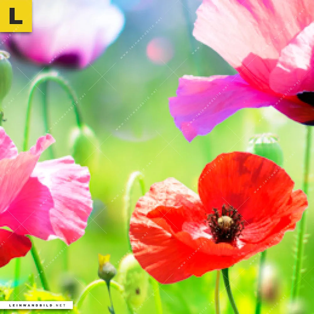Du konfigurierst Dein individuelles Leinwandbild | Bunte Mohnblumen | Quadrat und wir produzieren es NEU für Dich. Unsere Landschaften, Blumen - Botanik Leinwände sind KEINE Lagerware. Du bist Dir unsicher, welches Motiv oder Format das richtige für dein individuelles Keilrahmenbild ist, dann helfen wir dir gerne weiter und beraten dich!