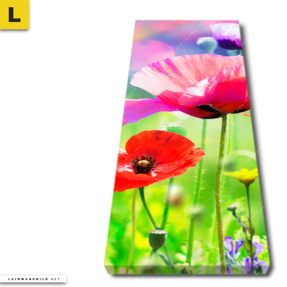 Du konfigurierst Dein individuelles Leinwandbild | Bunte Mohnblumen | Schmal und wir produzieren es NEU für Dich. Unsere Landschaften, Blumen - Botanik Leinwände sind KEINE Lagerware. Du bist Dir unsicher, welches Motiv oder Format das richtige für dein individuelles Keilrahmenbild ist, dann helfen wir dir gerne weiter und beraten dich!