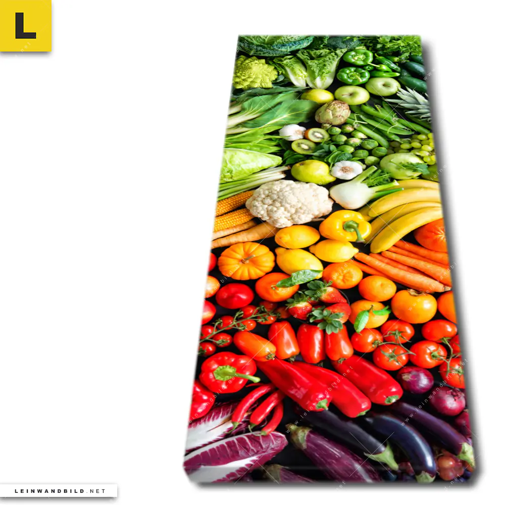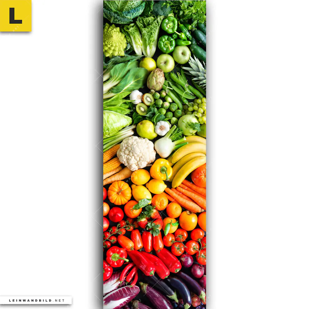 Du konfigurierst Dein individuelles Leinwandbild | Bunte Vielfalt frischer Früchte | Schmal und wir produzieren es NEU für Dich. Unsere Essen - Trinken Leinwände sind KEINE Lagerware. Du bist Dir unsicher, welches Motiv oder Format das richtige für dein individuelles Keilrahmenbild ist, dann helfen wir dir gerne weiter und beraten dich!