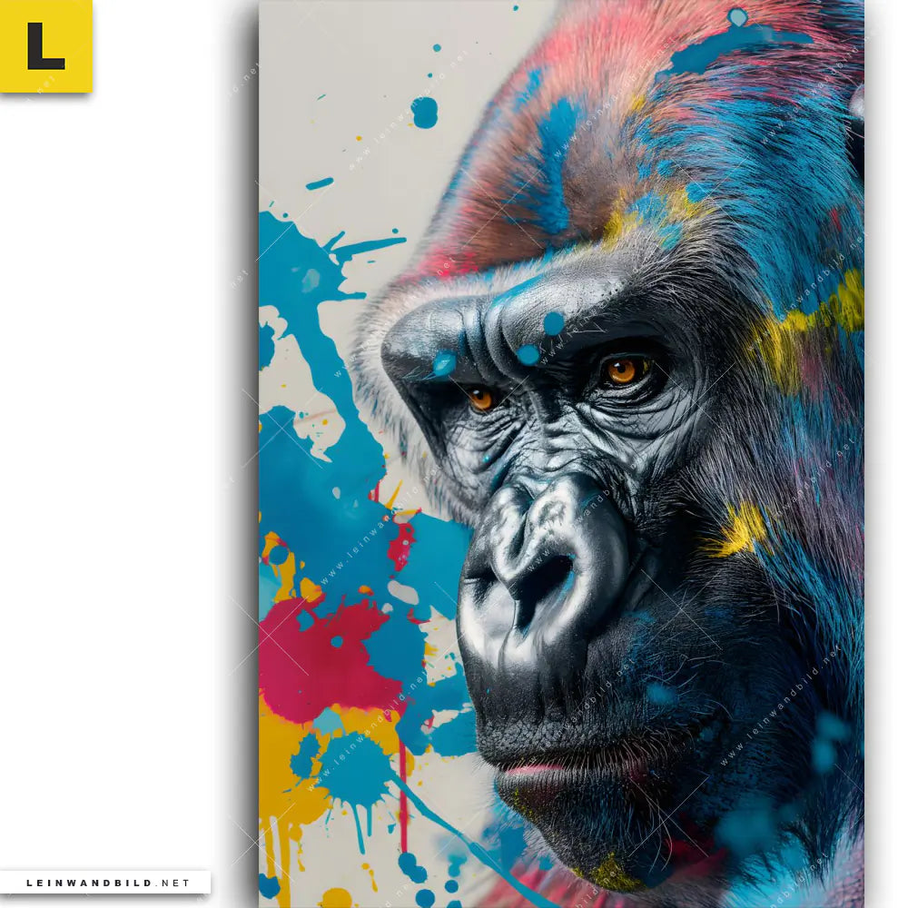 Leinwandbild | Bunter Gorilla mit Farbspritzern | Hochformat
