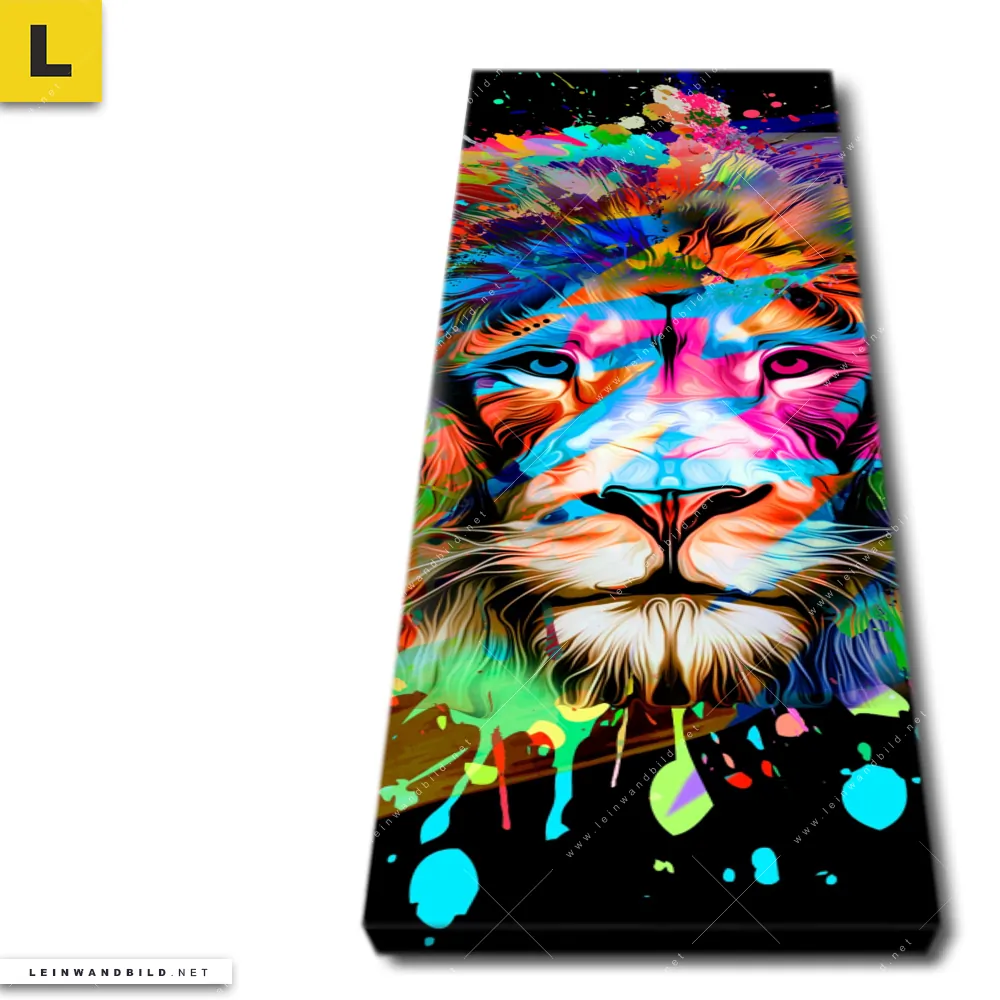Du konfigurierst Dein individuelles Leinwandbild | Bunter Löwe Schwarz | Schmal und wir produzieren es NEU für Dich. Unsere Tierwelt Leinwände sind KEINE Lagerware. Du bist Dir unsicher, welches Motiv oder Format das richtige für dein individuelles Keilrahmenbild ist, dann helfen wir dir gerne weiter und beraten dich!