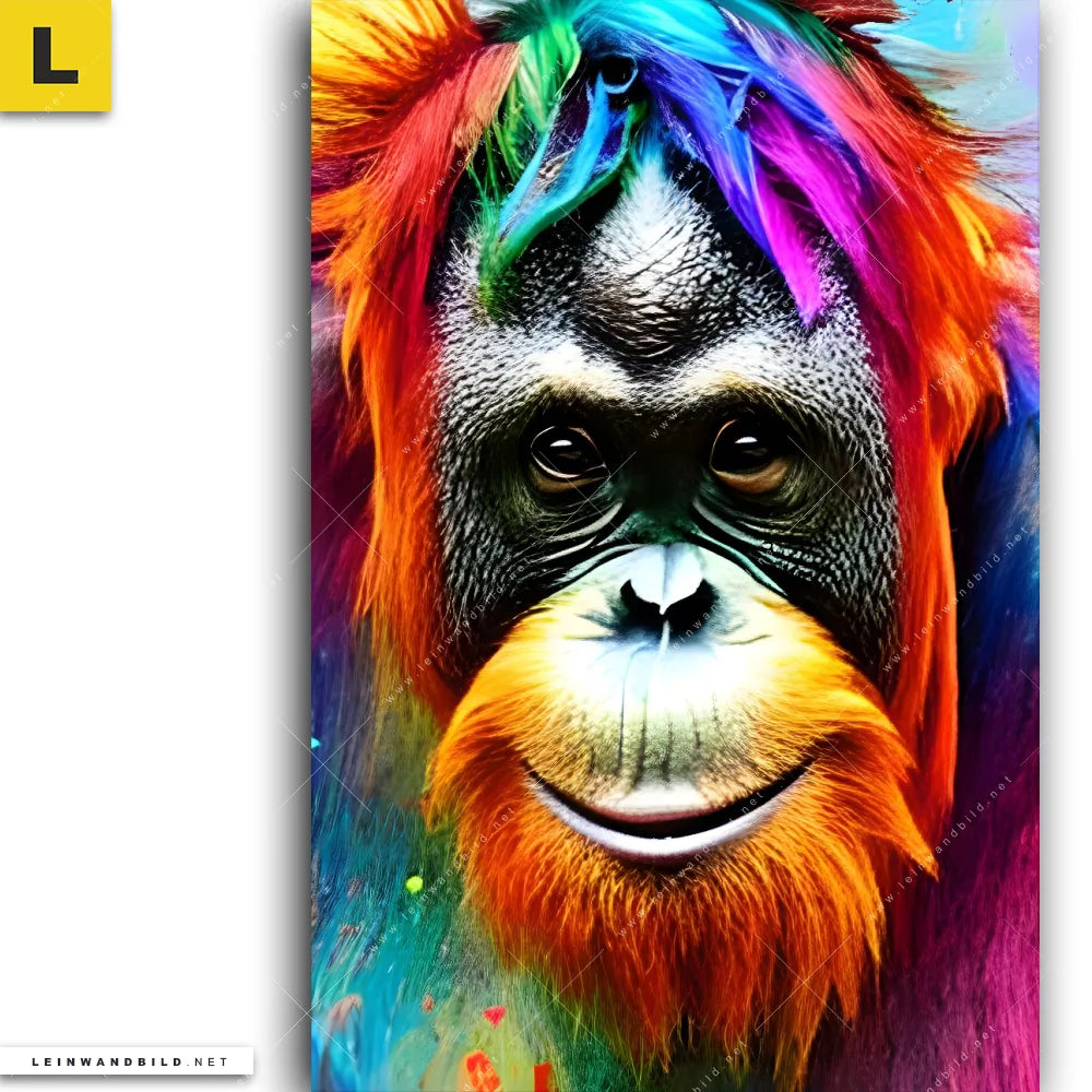 Du konfigurierst Dein individuelles Leinwandbild | Bunter Orang-Utan | Hochformat und wir produzieren es NEU für Dich. Unsere Tierwelt Leinwände sind KEINE Lagerware. Du bist Dir unsicher, welches Motiv oder Format das richtige für dein individuelles Keilrahmenbild ist, dann helfen wir dir gerne weiter und beraten dich!