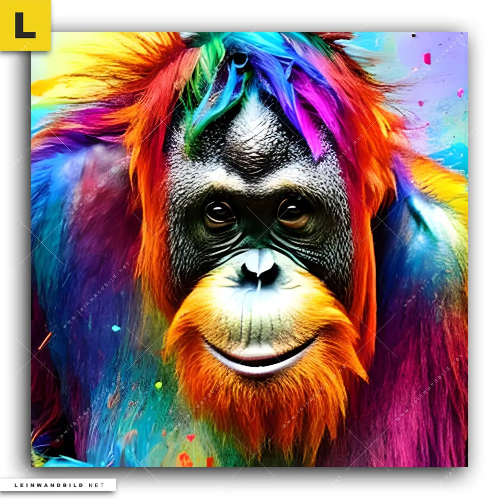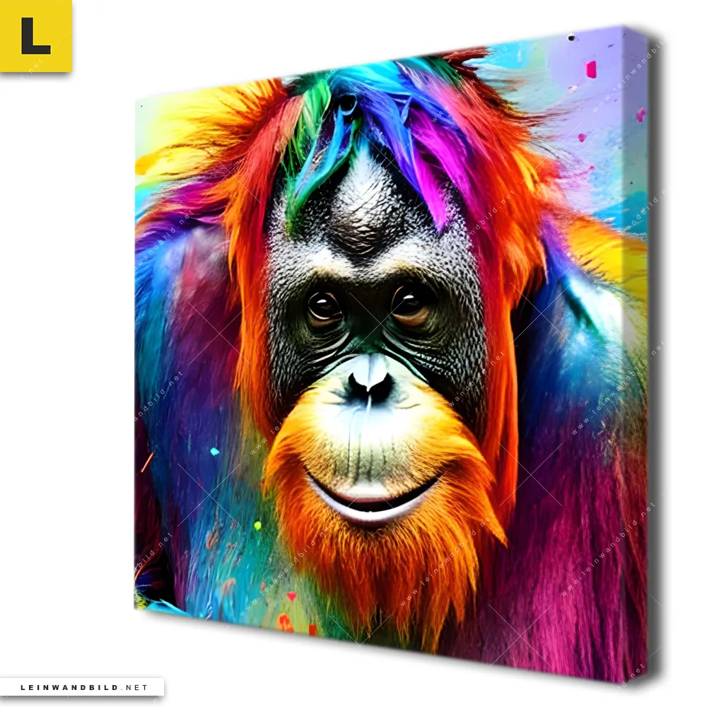 Du konfigurierst Dein individuelles Leinwandbild | Bunter Orang-Utan | Quadrat und wir produzieren es NEU für Dich. Unsere Tierwelt Leinwände sind KEINE Lagerware. Du bist Dir unsicher, welches Motiv oder Format das richtige für dein individuelles Keilrahmenbild ist, dann helfen wir dir gerne weiter und beraten dich!