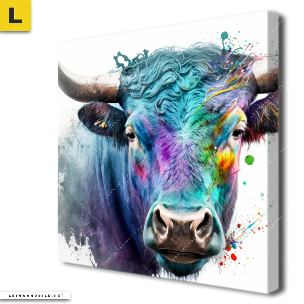 Du konfigurierst Dein individuelles Leinwandbild | Bunter Stierkopf | Quadrat und wir produzieren es NEU für Dich. Unsere Tierwelt Leinwände sind KEINE Lagerware. Du bist Dir unsicher, welches Motiv oder Format das richtige für dein individuelles Keilrahmenbild ist, dann helfen wir dir gerne weiter und beraten dich!