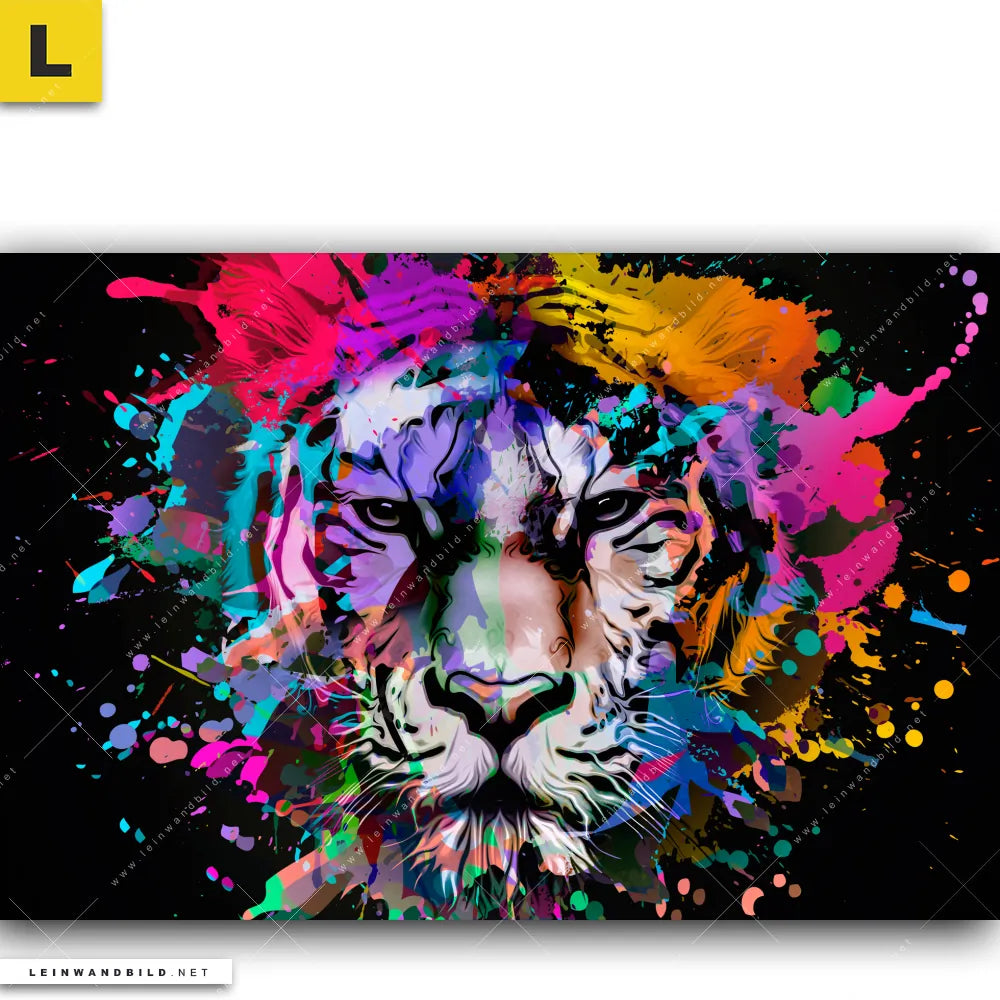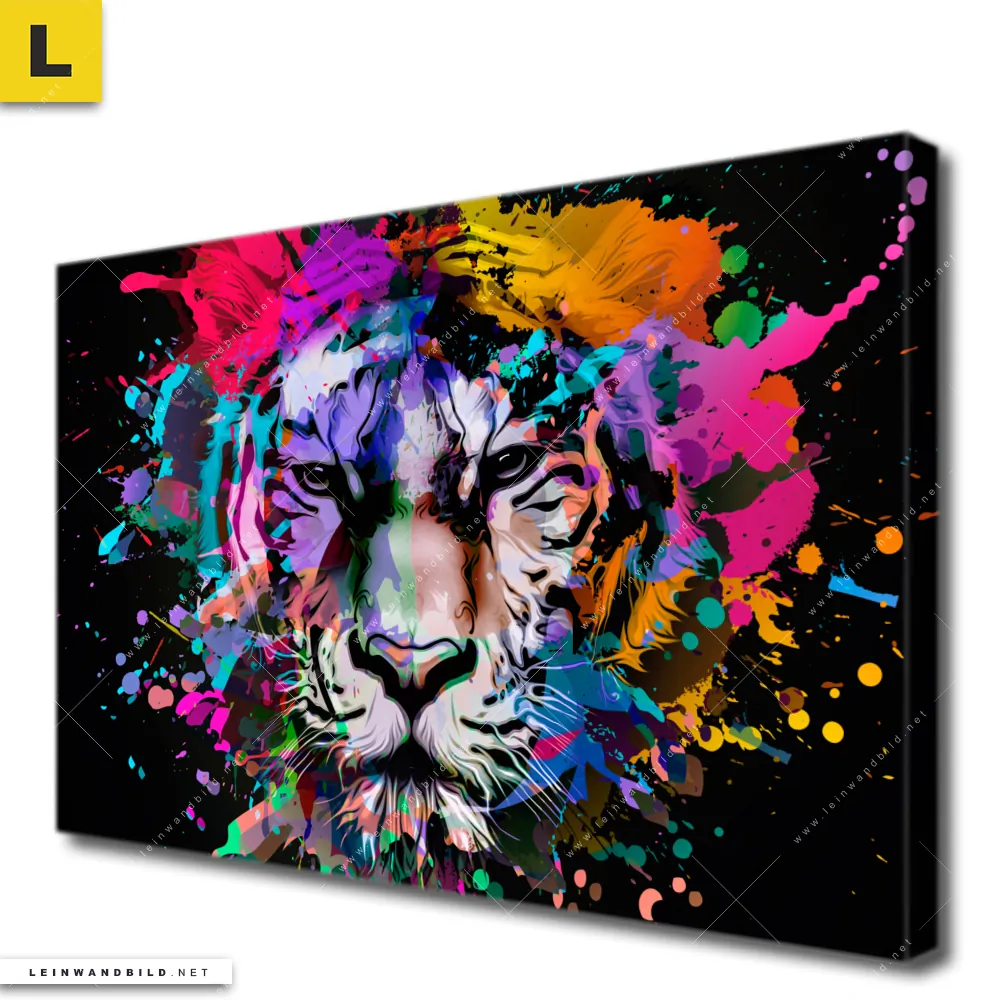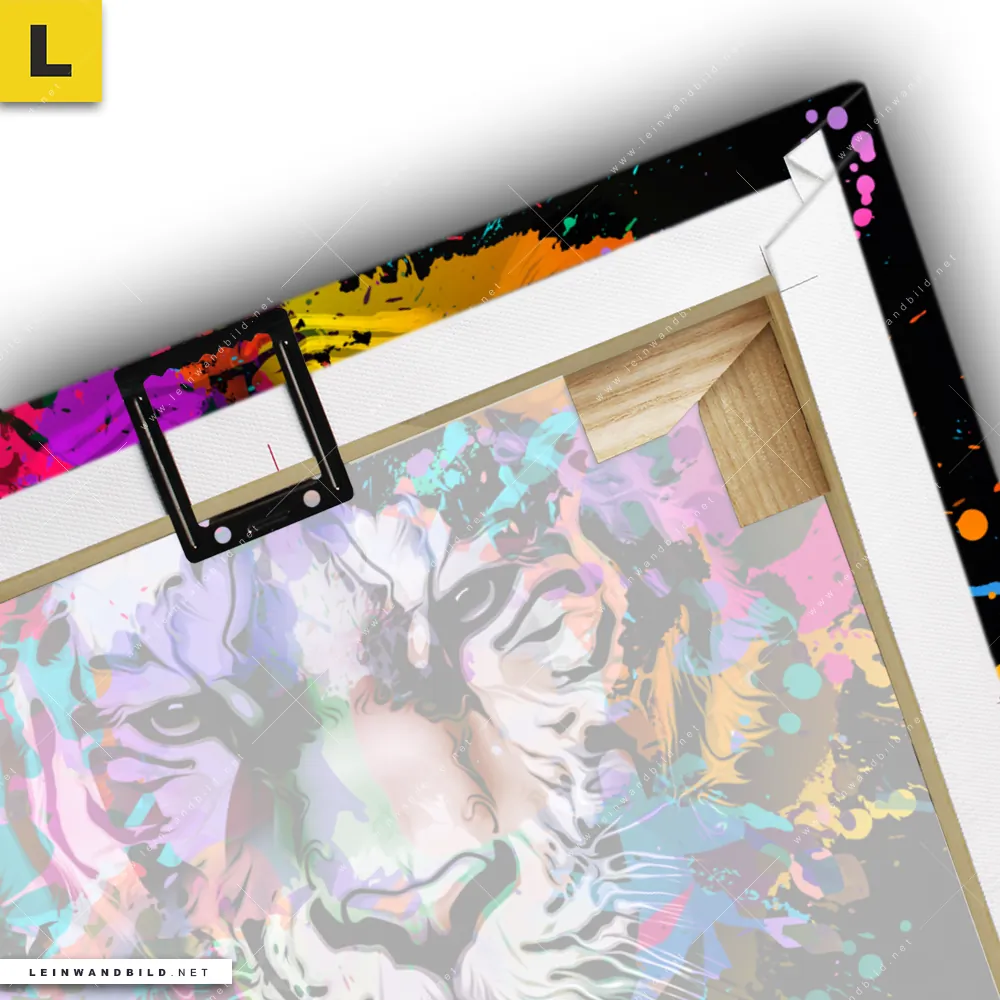 Du konfigurierst Dein individuelles Leinwandbild | Bunter Tiger Schwarz | Querformat und wir produzieren es NEU für Dich. Unsere Tierwelt Leinwände sind KEINE Lagerware. Du bist Dir unsicher, welches Motiv oder Format das richtige für dein individuelles Keilrahmenbild ist, dann helfen wir dir gerne weiter und beraten dich!