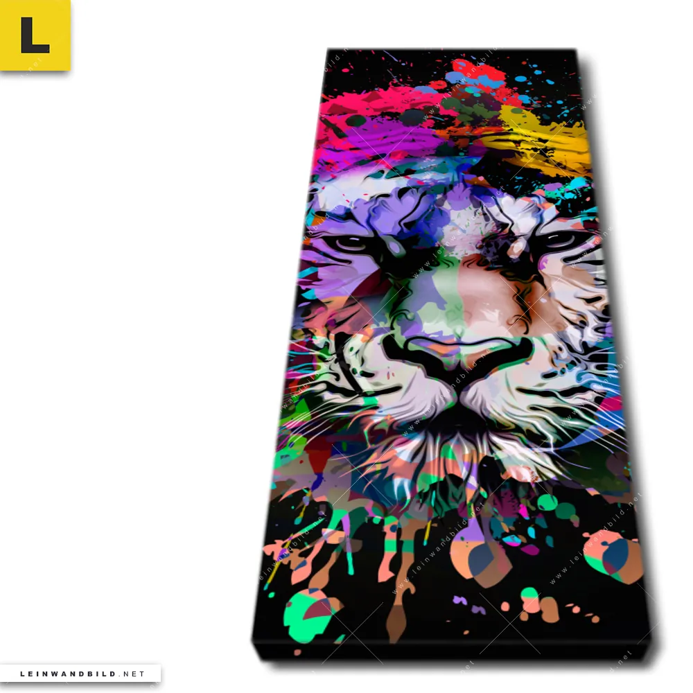 Du konfigurierst Dein individuelles Leinwandbild | Bunter Tiger Schwarz | Schmal und wir produzieren es NEU für Dich. Unsere Tierwelt Leinwände sind KEINE Lagerware. Du bist Dir unsicher, welches Motiv oder Format das richtige für dein individuelles Keilrahmenbild ist, dann helfen wir dir gerne weiter und beraten dich!