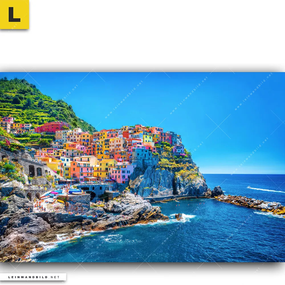 Du konfigurierst Dein individuelles Leinwandbild | Buntes Dorf Manarola | Querformat und wir produzieren es NEU für Dich. Unsere Städte - Skylines Leinwände sind KEINE Lagerware. Du bist Dir unsicher, welches Motiv oder Format das richtige für dein individuelles Keilrahmenbild ist, dann helfen wir dir gerne weiter und beraten dich!