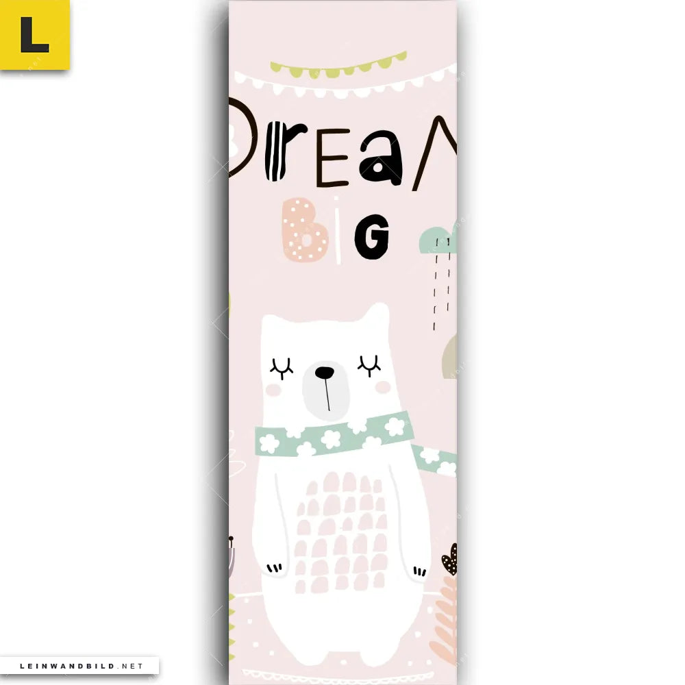 Du konfigurierst Dein individuelles Leinwandbild | Dream Big Eisbär | Schmal und wir produzieren es NEU für Dich. Unsere Tierwelt Leinwände sind KEINE Lagerware. Du bist Dir unsicher, welches Motiv oder Format das richtige für dein individuelles Keilrahmenbild ist, dann helfen wir dir gerne weiter und beraten dich!
