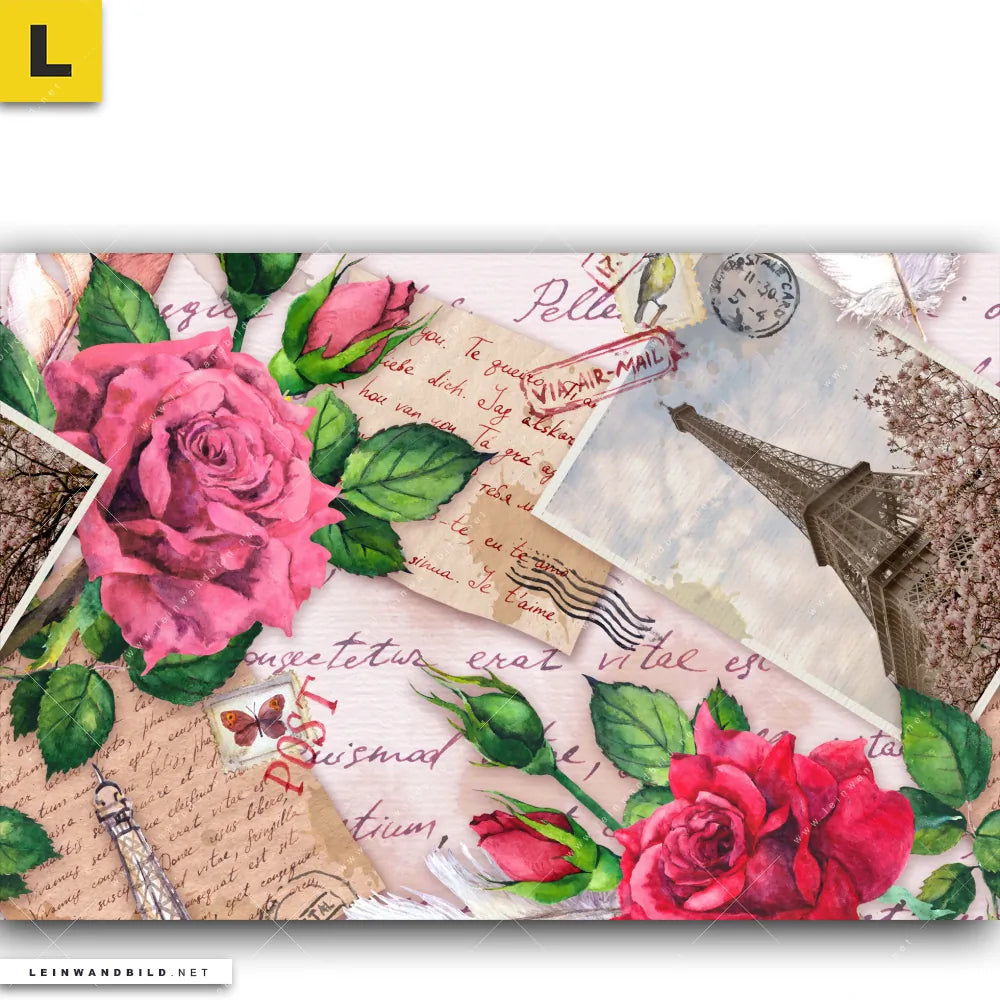 Leinwandbild | Eifelturm & Rosen | Querformat
