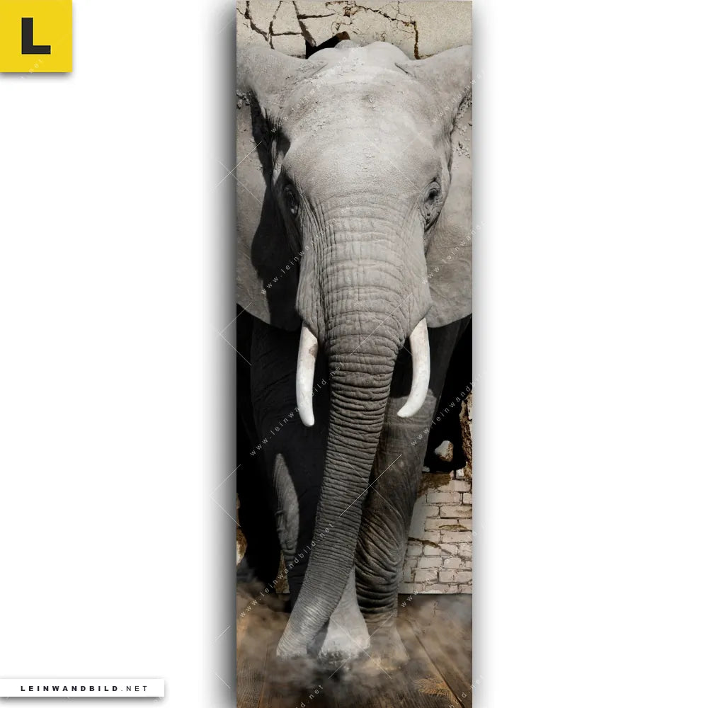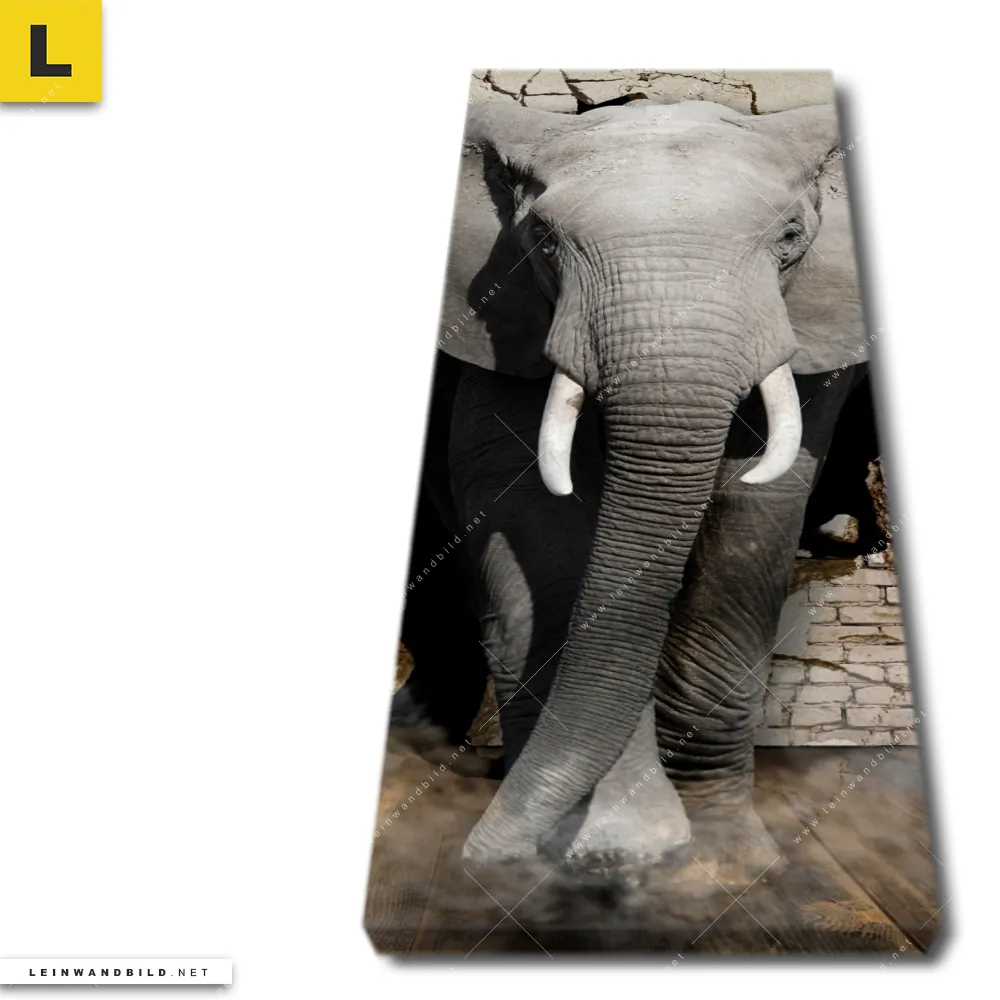 Du konfigurierst Dein individuelles Leinwandbild | Elefant bricht durch Mauer | Schmal und wir produzieren es NEU für Dich. Unsere Tierwelt Leinwände sind KEINE Lagerware. Du bist Dir unsicher, welches Motiv oder Format das richtige für dein individuelles Keilrahmenbild ist, dann helfen wir dir gerne weiter und beraten dich!