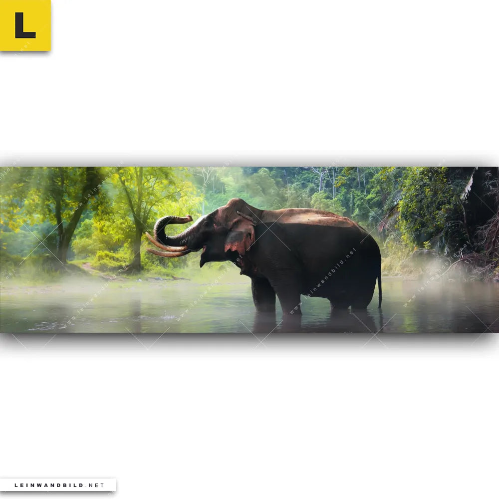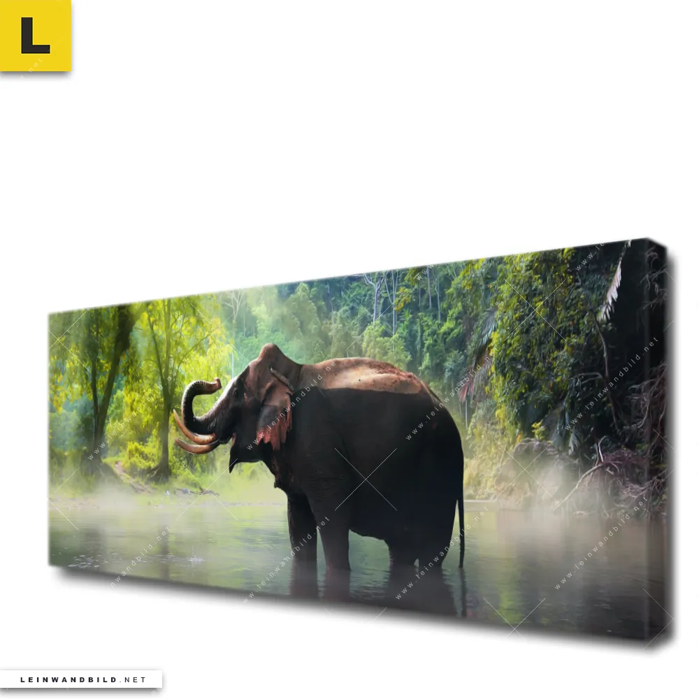 Du konfigurierst Dein individuelles Leinwandbild | Elefant im Wasser | Panorama und wir produzieren es NEU für Dich. Unsere Tierwelt Leinwände sind KEINE Lagerware. Du bist Dir unsicher, welches Motiv oder Format das richtige für dein individuelles Keilrahmenbild ist, dann helfen wir dir gerne weiter und beraten dich!