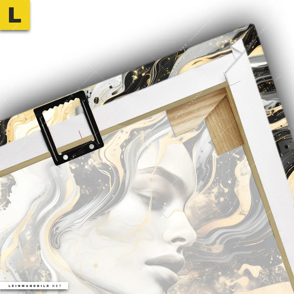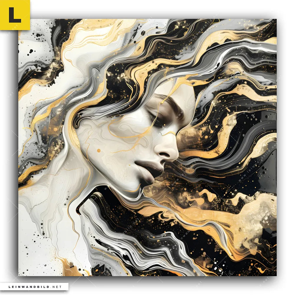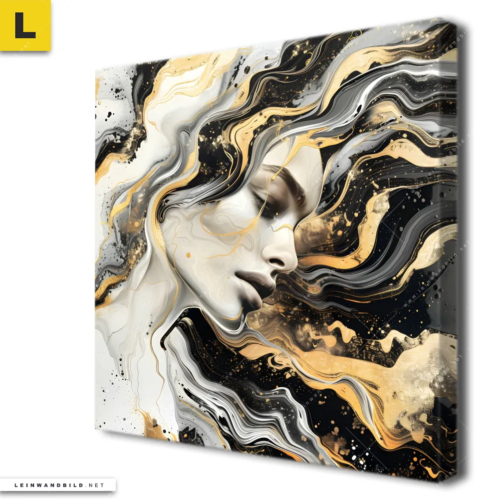 Du konfigurierst Dein individuelles Leinwandbild | Elegantes gold-schwarzes Porträt | Quadrat und wir produzieren es NEU für Dich. Unsere Porträts - Menschen, Muster - Texturen Leinwände sind KEINE Lagerware. Du bist Dir unsicher, welches Motiv oder Format das richtige für dein individuelles Keilrahmenbild ist, dann helfen wir dir gerne weiter und beraten dich!
