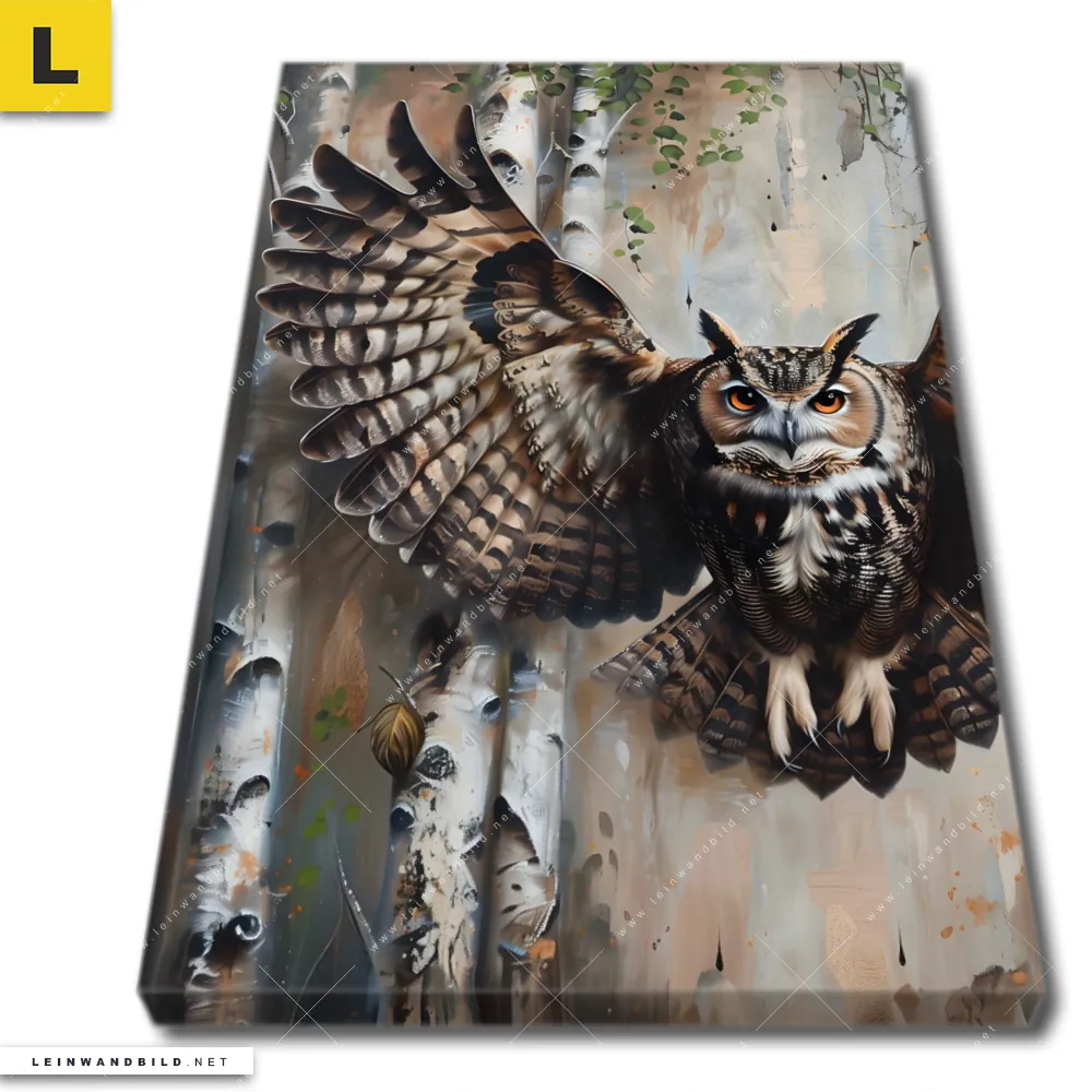 Du konfigurierst Dein individuelles Leinwandbild | Eule im Birkenwald | Hochformat und wir produzieren es NEU für Dich. Unsere Tierwelt, Wald - Bäume Leinwände sind KEINE Lagerware. Du bist Dir unsicher, welches Motiv oder Format das richtige für dein individuelles Keilrahmenbild ist, dann helfen wir dir gerne weiter und beraten dich!
