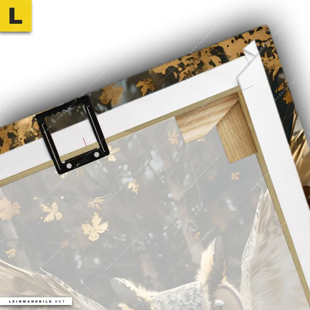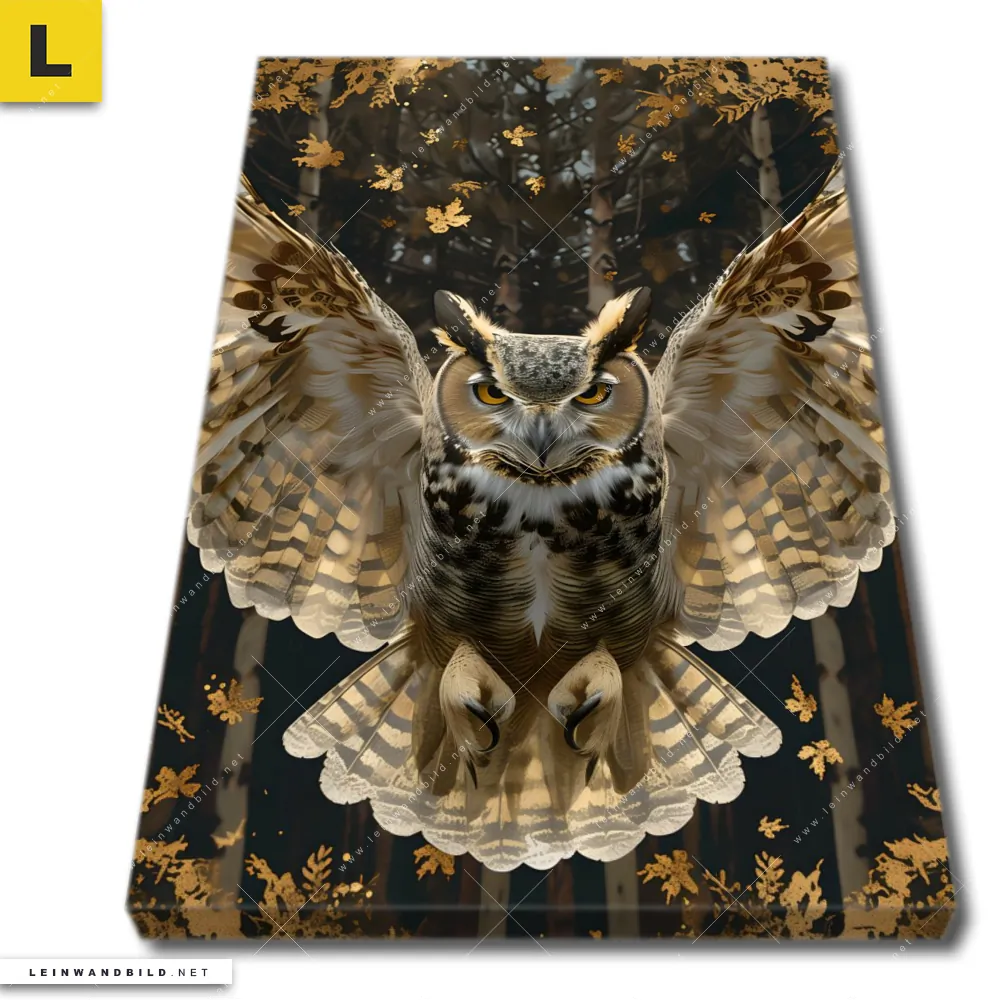 Du konfigurierst Dein individuelles Leinwandbild | Eule inmitten goldener Blätter | Hochformat und wir produzieren es NEU für Dich. Unsere Tierwelt, Wald - Bäume Leinwände sind KEINE Lagerware. Du bist Dir unsicher, welches Motiv oder Format das richtige für dein individuelles Keilrahmenbild ist, dann helfen wir dir gerne weiter und beraten dich!
