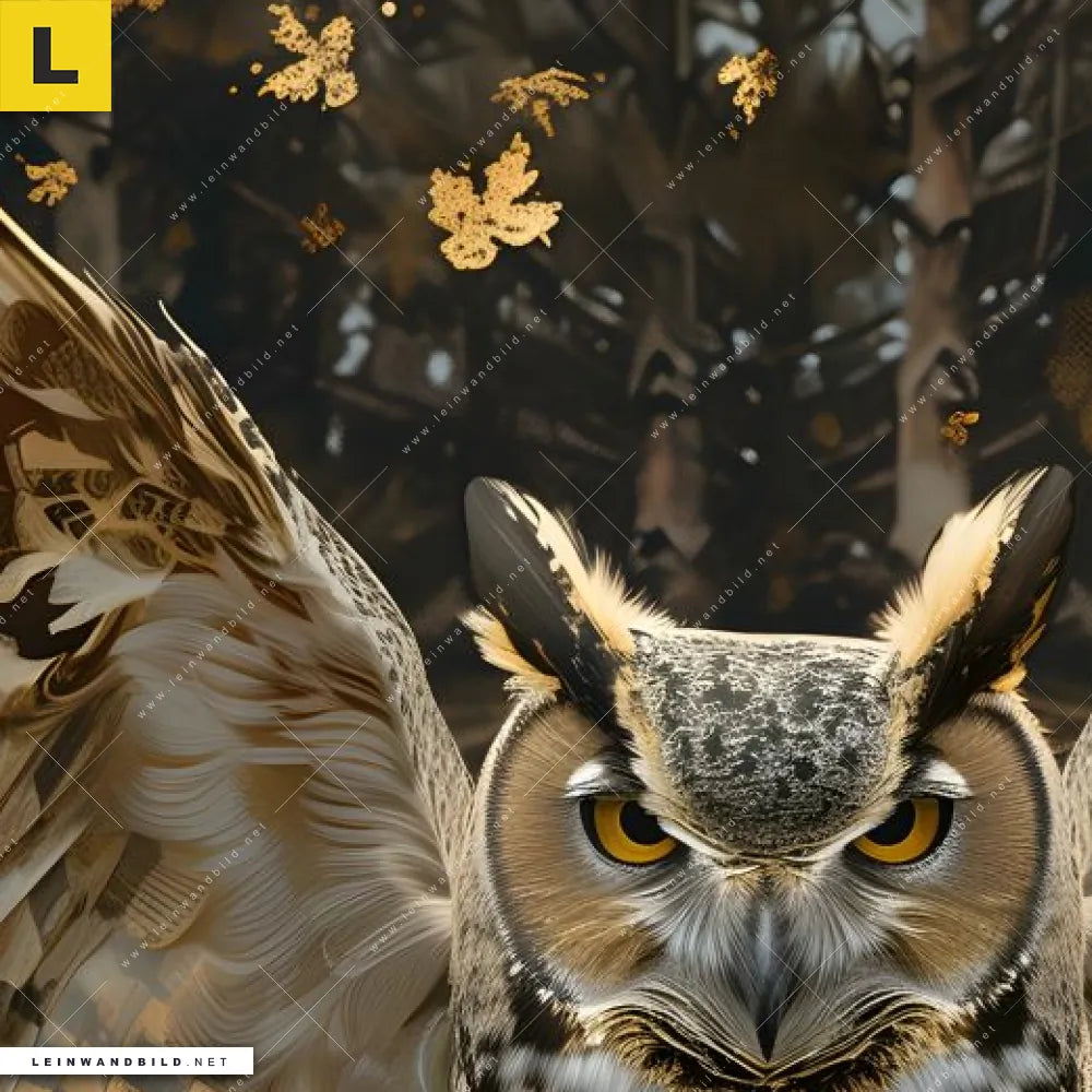 • Motiv: Eule inmitten goldener Blätter | Motiv am Rand gespiegelt
