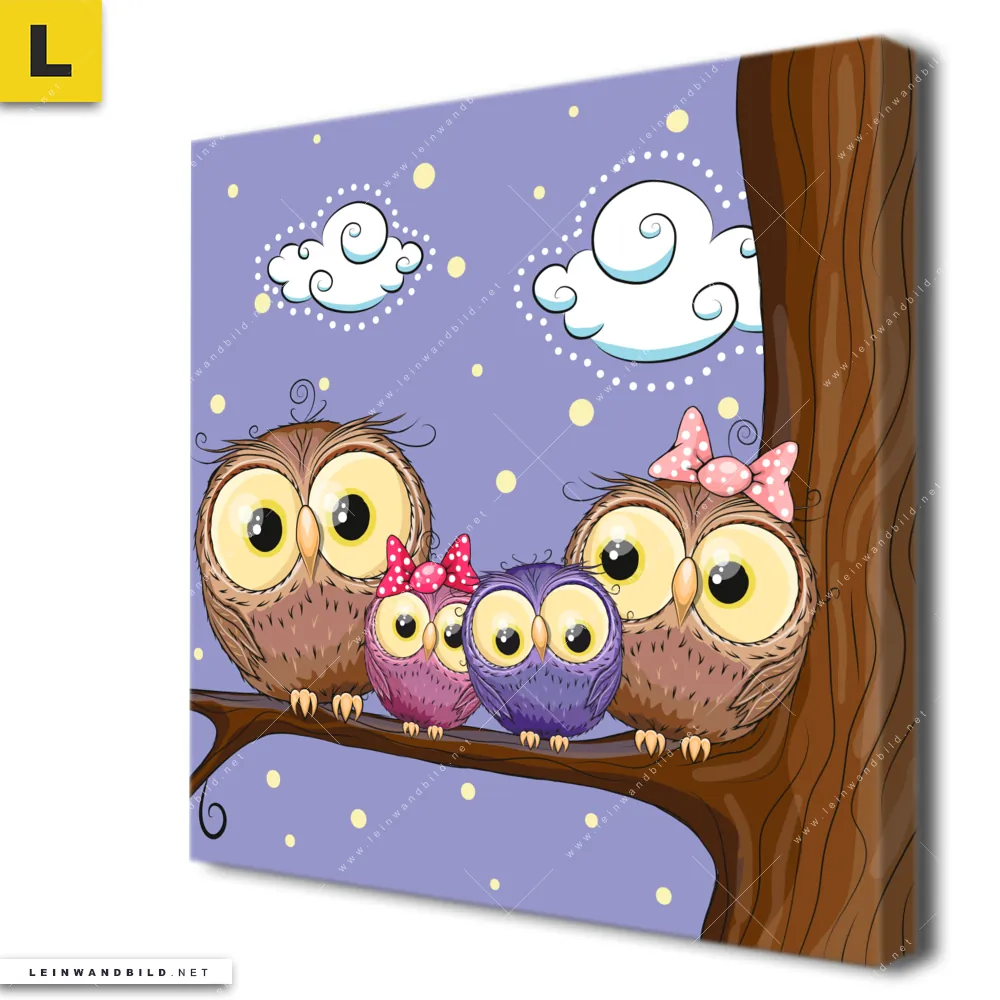 Du konfigurierst Dein individuelles Leinwandbild | Eulenfamilie | Quadrat und wir produzieren es NEU für Dich. Unsere Tierwelt Leinwände sind KEINE Lagerware. Du bist Dir unsicher, welches Motiv oder Format das richtige für dein individuelles Keilrahmenbild ist, dann helfen wir dir gerne weiter und beraten dich!