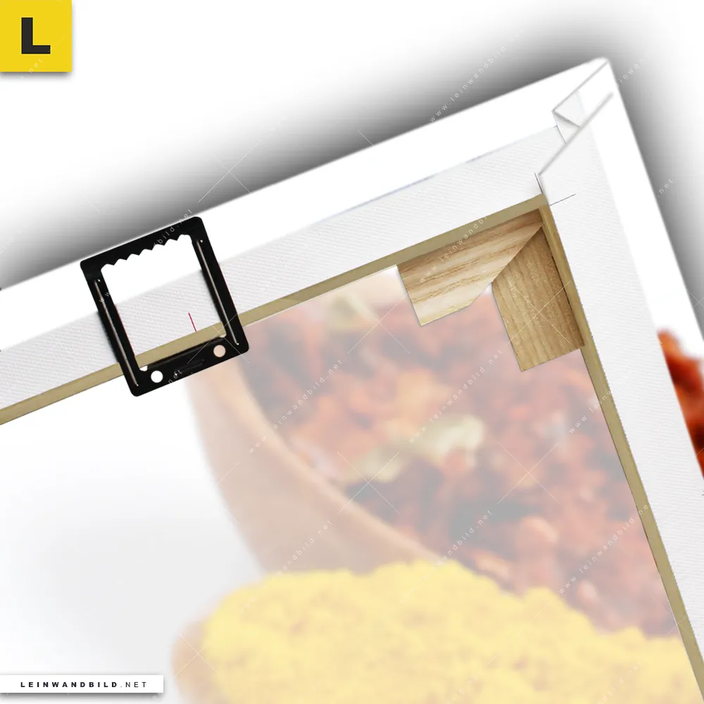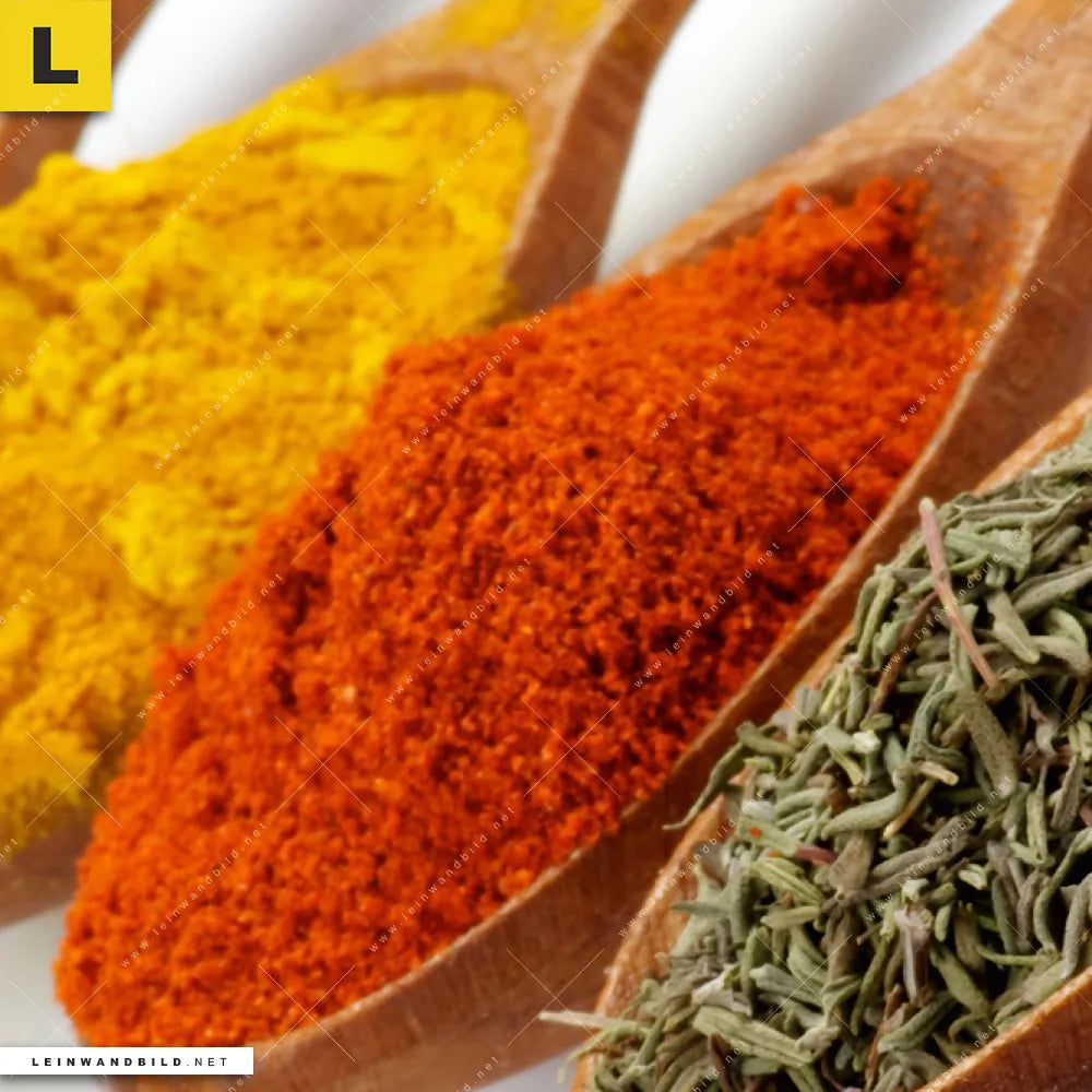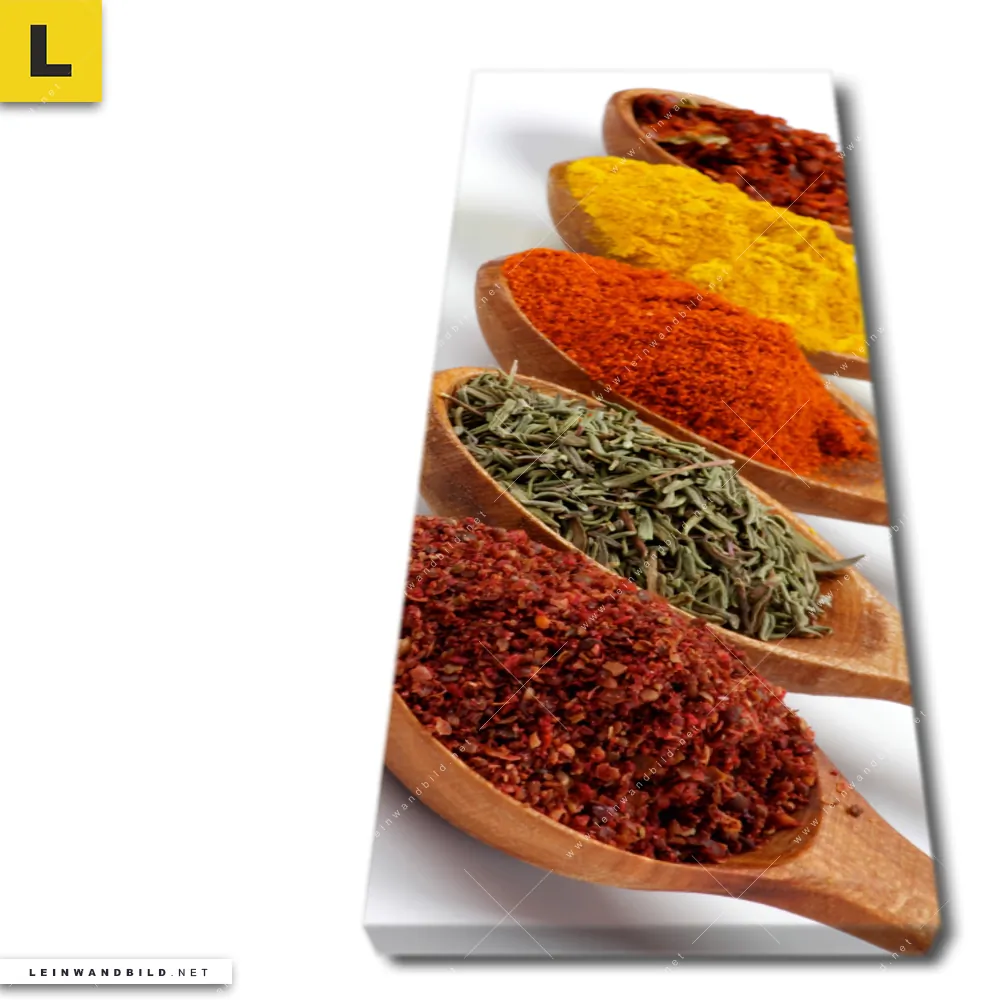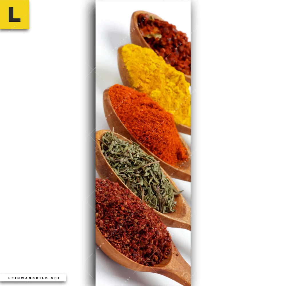 Du konfigurierst Dein individuelles Leinwandbild | Farbige Gewürze auf Holzlöffel | Schmal und wir produzieren es NEU für Dich. Unsere Essen - Trinken Leinwände sind KEINE Lagerware. Du bist Dir unsicher, welches Motiv oder Format das richtige für dein individuelles Keilrahmenbild ist, dann helfen wir dir gerne weiter und beraten dich!