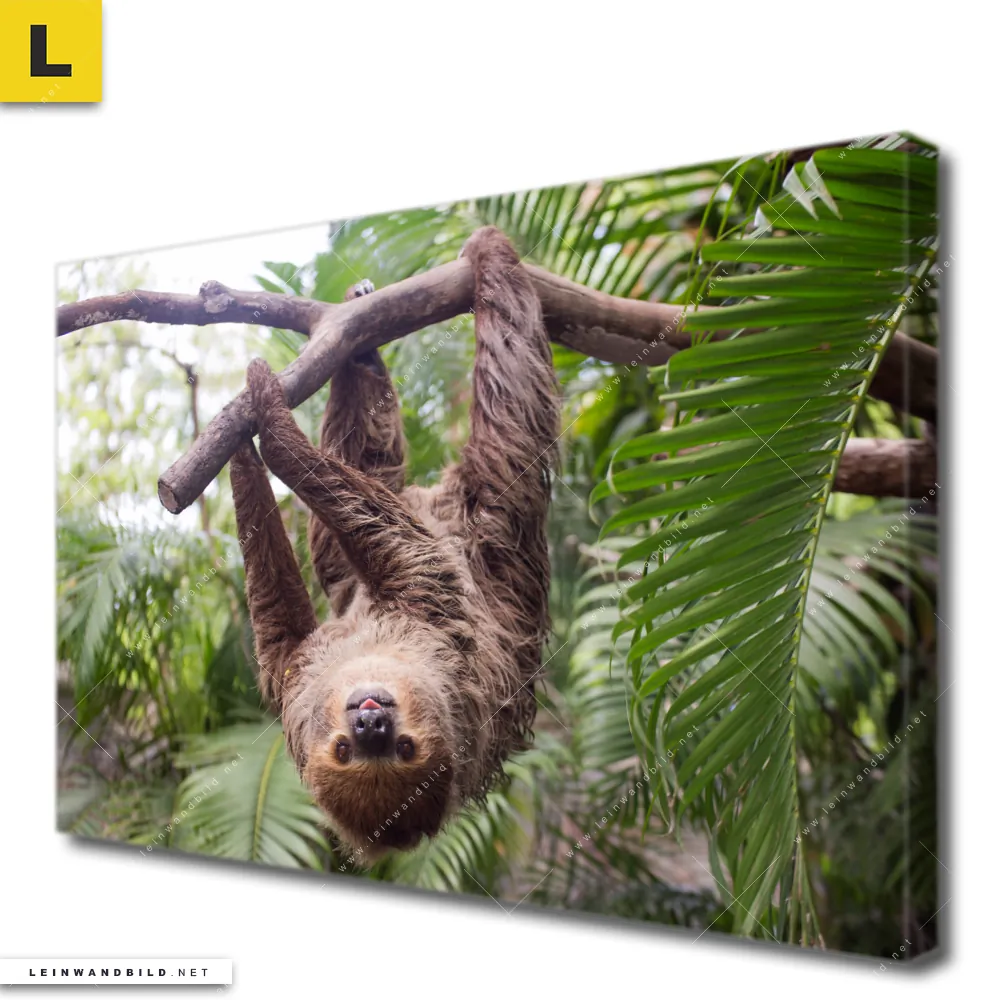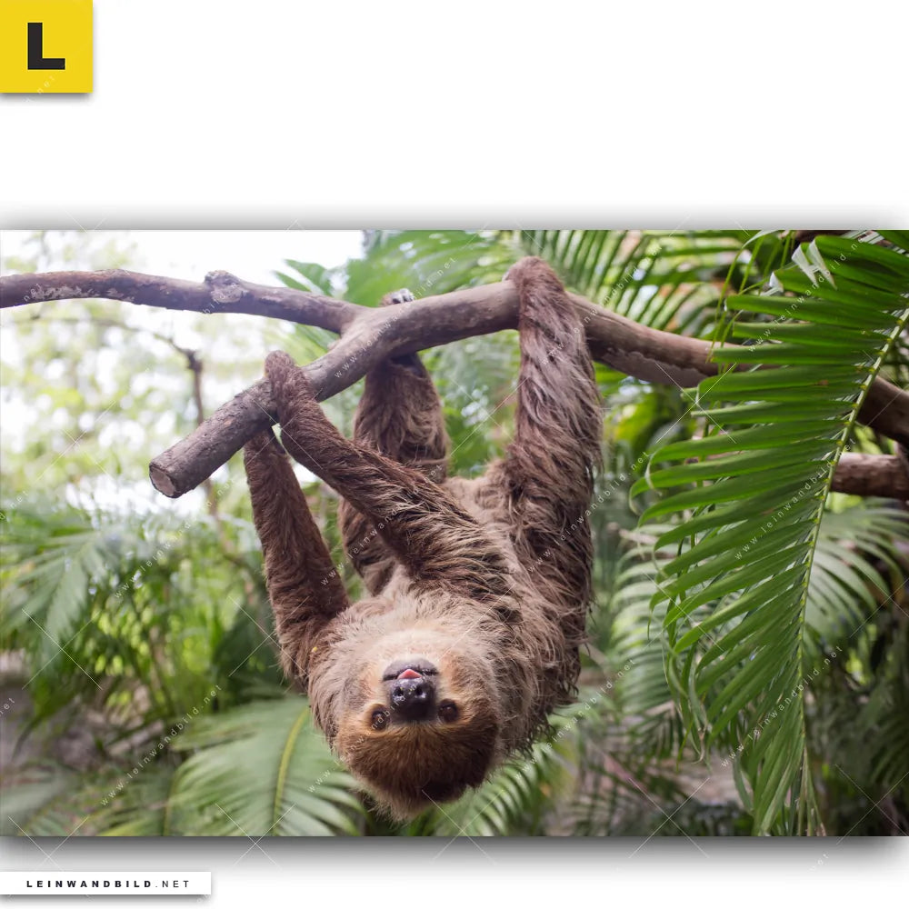 Begriffe wie Faultier, Dschungel, Wildtiere, abhängen haben Dich auf der Suche nach Deinem neuen Wandbild auf Leinwand inspiriert? Dann sollte das Leinwandbild Faultier zeigt Zunge den Weg zu Dir finden.