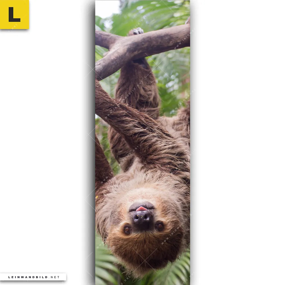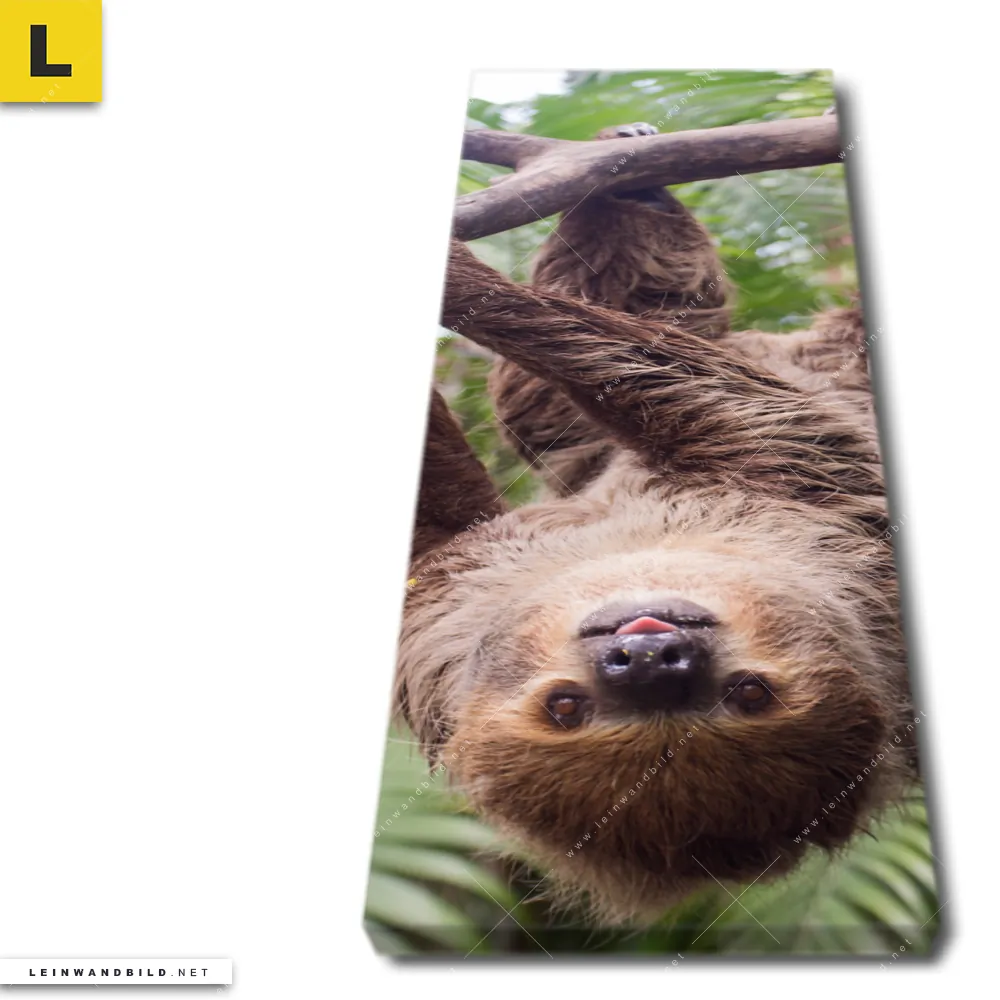 Du konfigurierst Dein individuelles Leinwandbild | Faultier streckt Zunge raus | Schmal und wir produzieren es NEU für Dich. Unsere Tierwelt, Wald - Bäume Leinwände sind KEINE Lagerware. Du bist Dir unsicher, welches Motiv oder Format das richtige für dein individuelles Keilrahmenbild ist, dann helfen wir dir gerne weiter und beraten dich!