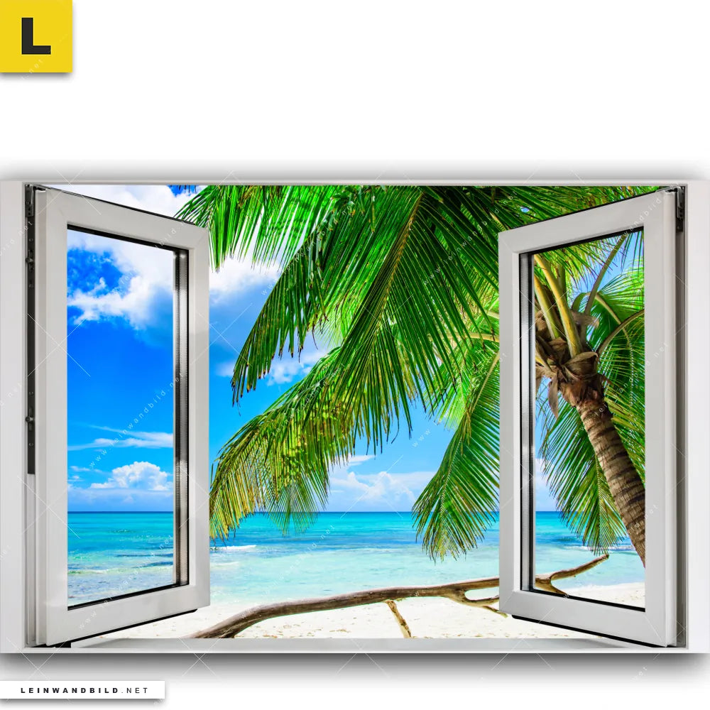 Leinwandbild | Fensterblick Karibik Palme | Querformat