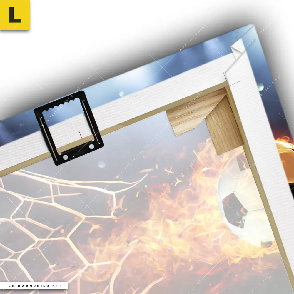 Du konfigurierst Dein individuelles Leinwandbild | Feuriger Fussball | Quadrat und wir produzieren es NEU für Dich. Unsere Sport - Freizeit Leinwände sind KEINE Lagerware. Du bist Dir unsicher, welches Motiv oder Format das richtige für dein individuelles Keilrahmenbild ist, dann helfen wir dir gerne weiter und beraten dich!