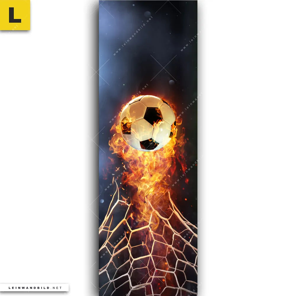 Du konfigurierst Dein individuelles Leinwandbild | Feuriger Fussball | Schmal und wir produzieren es NEU für Dich. Unsere Sport - Freizeit Leinwände sind KEINE Lagerware. Du bist Dir unsicher, welches Motiv oder Format das richtige für dein individuelles Keilrahmenbild ist, dann helfen wir dir gerne weiter und beraten dich!