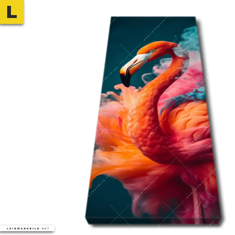 Du konfigurierst Dein individuelles Leinwandbild | Flamingo in bunter Rauchwolke | Schmal und wir produzieren es NEU für Dich. Unsere Tierwelt Leinwände sind KEINE Lagerware. Du bist Dir unsicher, welches Motiv oder Format das richtige für dein individuelles Keilrahmenbild ist, dann helfen wir dir gerne weiter und beraten dich!