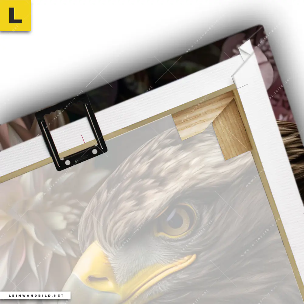 Du konfigurierst Dein individuelles Leinwandbild | Florale Eleganz und Adlerblick | Hochformat und wir produzieren es NEU für Dich. Unsere Tierwelt, Blumen - Botanik Leinwände sind KEINE Lagerware. Du bist Dir unsicher, welches Motiv oder Format das richtige für dein individuelles Keilrahmenbild ist, dann helfen wir dir gerne weiter und beraten dich!