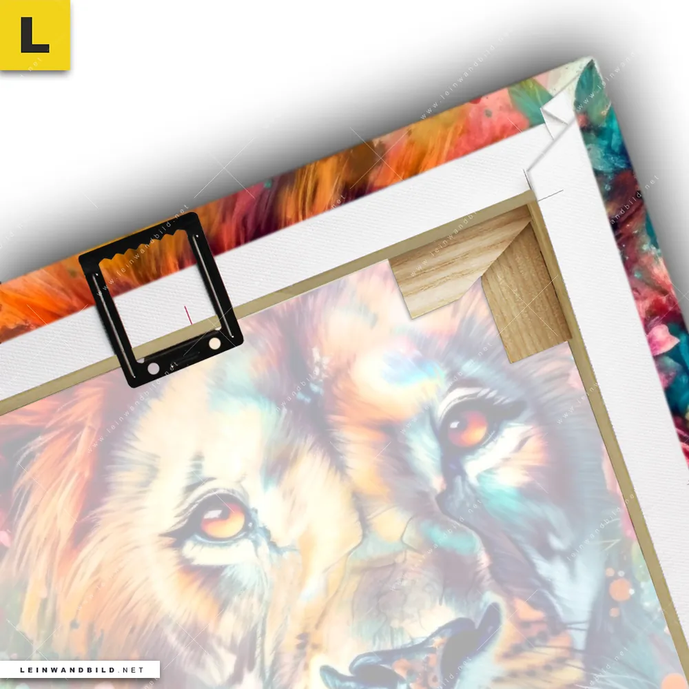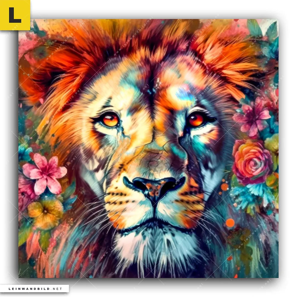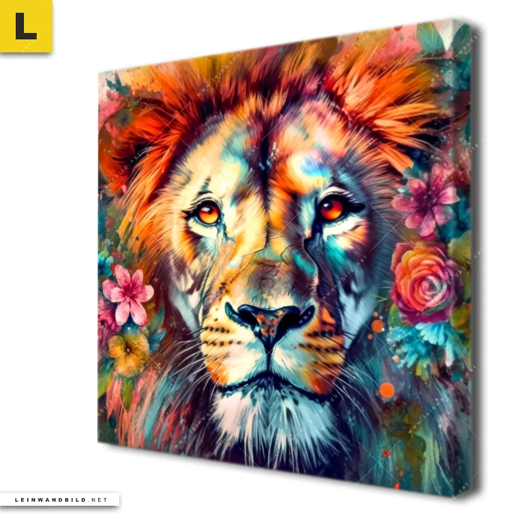 Du konfigurierst Dein individuelles Leinwandbild | Floraler Löwe | Quadrat und wir produzieren es NEU für Dich. Unsere Tierwelt, Blumen - Botanik Leinwände sind KEINE Lagerware. Du bist Dir unsicher, welches Motiv oder Format das richtige für dein individuelles Keilrahmenbild ist, dann helfen wir dir gerne weiter und beraten dich!
