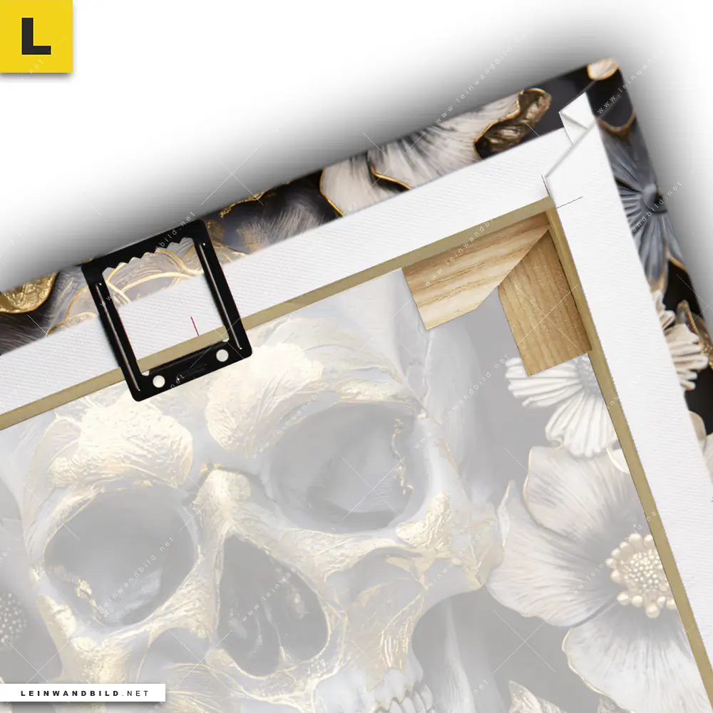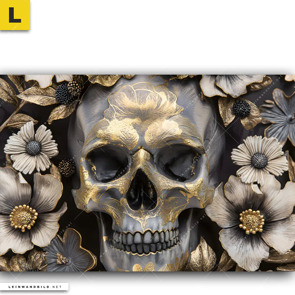 Du konfigurierst Dein individuelles Leinwandbild | Floraler Totenschädel | Querformat und wir produzieren es NEU für Dich. Unsere Porträts - Menschen, Blumen - Botanik Leinwände sind KEINE Lagerware. Du bist Dir unsicher, welches Motiv oder Format das richtige für dein individuelles Keilrahmenbild ist, dann helfen wir dir gerne weiter und beraten dich!
