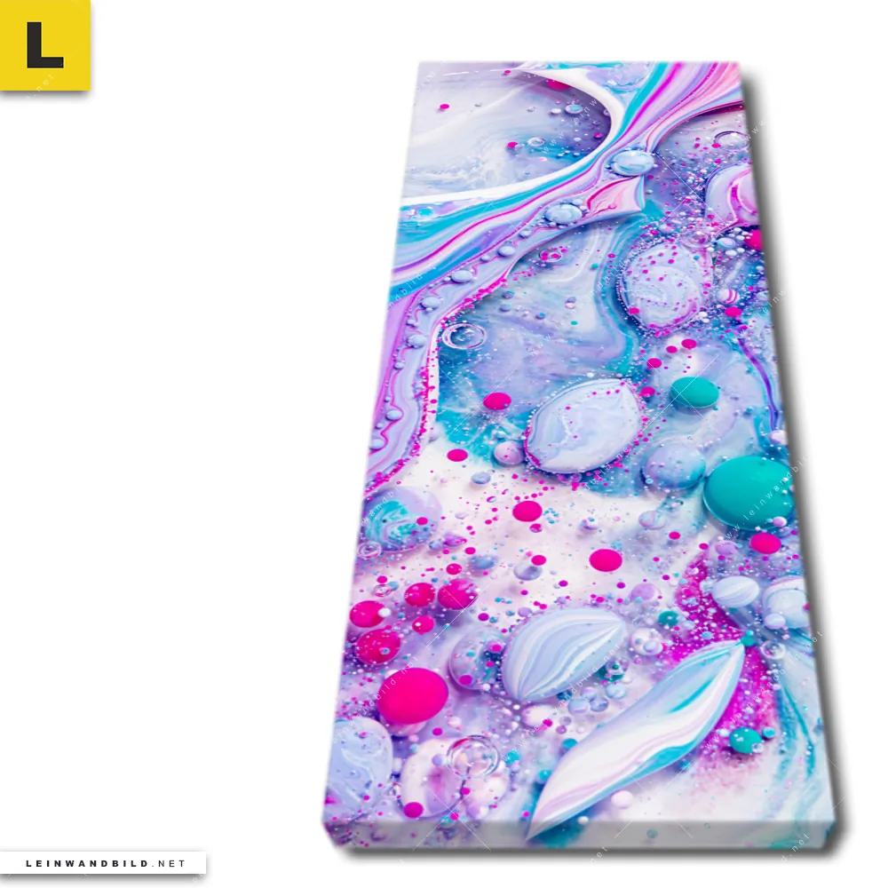 Du bist auf der Suche nach einem XXL Muster - Texturen Leinwandbild und Begriffe wie Flüssigkeit, Acryl, flüssig, Farbe, Tropfen, Blasen, Kunst, Tinte, Fluid Art haben Dich auf der Suche nach Deinem neuen Schmalen Wandbild auf Leinwand inspiriert? Farben wie Weiss, Pink, Lila, Türkis, Hellblau, Rosa dürfen auf Deinem neuen Keilrahmenbild im Panorama-Hochformat nicht fehlen und Leinwände im Abstrakt, Modern Art Stil passen perfekt zu Deinem Einrichtungsstil?