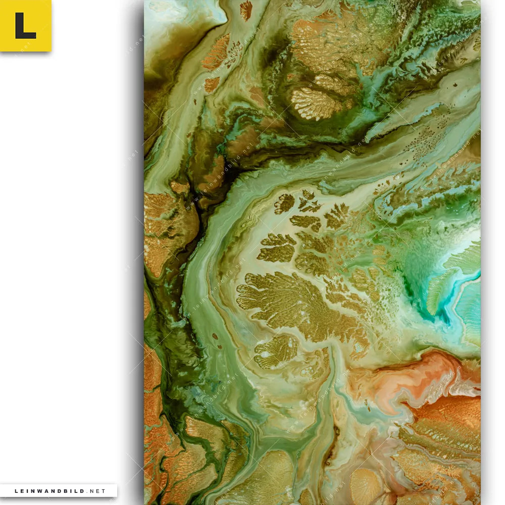 Du bist auf der Suche nach einem XXL Muster - Texturen Leinwandbild und Begriffe wie Flüssigkeit, Acryl, flüssig, Farbe, Marmorierung, Tinte, Alkohol, Landschaft, Natur, Wald, Fluid Art haben Dich auf der Suche nach Deinem neuen Hochformat Wandbild auf Leinwand inspiriert? Farben wie Hellgrün, Grün, Beige, Türkis dürfen auf Deinem neuen vertikalen Keilrahmenbild nicht fehlen und Leinwände im Abstrakt, Modern Art Stil passen perfekt zu Deinem Einrichtungsstil?