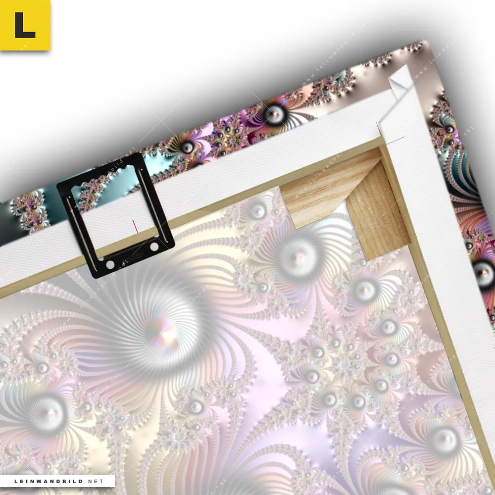 Das Leinwandbild | Fraktale Kunst No.1 | Quadrat wird auf 260 g/m² Polyester-Stretch-Canvas gedruckt und überzeugt in den Farben Lila, Mint, Beige mit hoher Farbintensität, Farbsättigung und langer Farb-Echtheit. Bei der Herstellung unserer Muster - Texturen Leinwandbilder im Quadrat achten wir stets auf hochwertige Qualität, sowohl im Verarbeitungsprozess als auch bei den Materialien. Die Leinwand mit dem Motiv Kunst mit geometrischen Formen im Quadrat wird fix und fertig, auf einem 2cm starken Holzkeilrahmen aufgespannt, geliefert. Vom Druck über den Rahmenbau bis zum Bespannen des Leinwandbildes Fraktalkunst Metalloptik mit Spirale, Muster, Abstrakt, Digital, Blumen gestaltet als Digitale Kunst wird bei uns alles in verantwortungsvoller Handarbeit gefertigt.