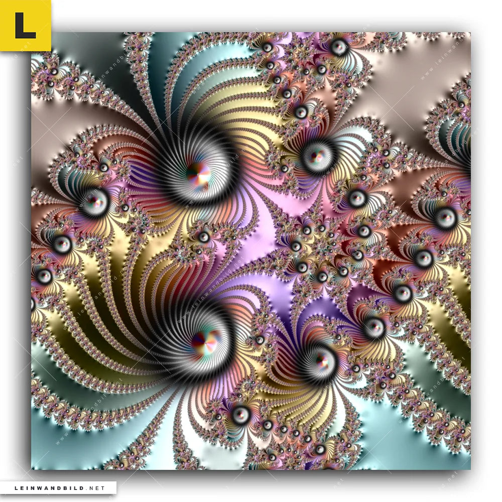 Begriffe wie Spirale, Muster, Abstrakt, Digital, Blumen haben Dich auf der Suche nach Deinem neuen Wandbild auf Leinwand inspiriert? Dann sollte das Leinwandbild Fraktalkunst Metalloptik den Weg zu Dir finden.