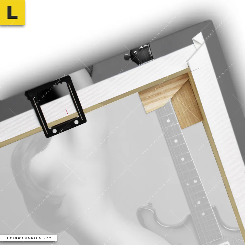 Begriffe wie Frau, Erotik, modern, Beauty, Körper, Body, Akt, Musik, Gitarre, Instrument haben Dich auf der Suche nach Deinem neuen Wandbild auf Leinwand inspiriert? Dann sollte das Leinwandbild Seitenprofil einer nackten Frau mit Musikinstrument den Weg zu Dir finden.