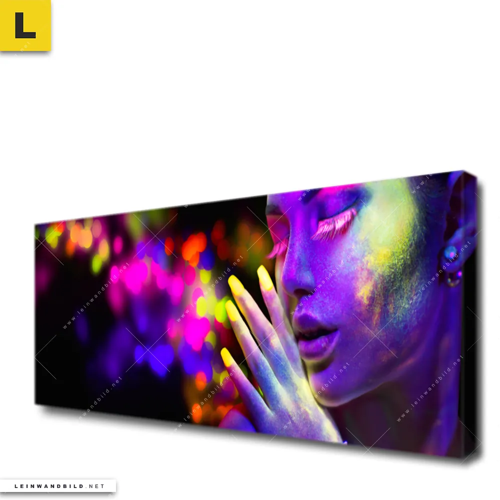 Du konfigurierst Dein individuelles Leinwandbild | Frau im Neonlicht | Panorama und wir produzieren es NEU für Dich. Unsere Porträts - Menschen Leinwände sind KEINE Lagerware. Du bist Dir unsicher, welches Motiv oder Format das richtige für dein individuelles Keilrahmenbild ist, dann helfen wir dir gerne weiter und beraten dich!