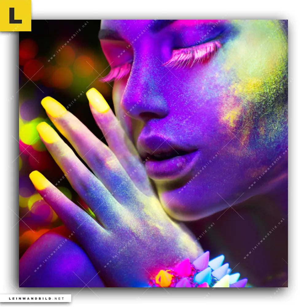 Du konfigurierst Dein individuelles Leinwandbild | Frau im Neonlicht | Quadrat und wir produzieren es NEU für Dich. Unsere Porträts - Menschen Leinwände sind KEINE Lagerware. Du bist Dir unsicher, welches Motiv oder Format das richtige für dein individuelles Keilrahmenbild ist, dann helfen wir dir gerne weiter und beraten dich!